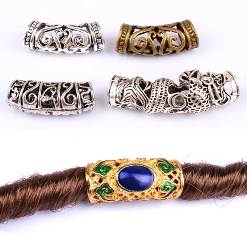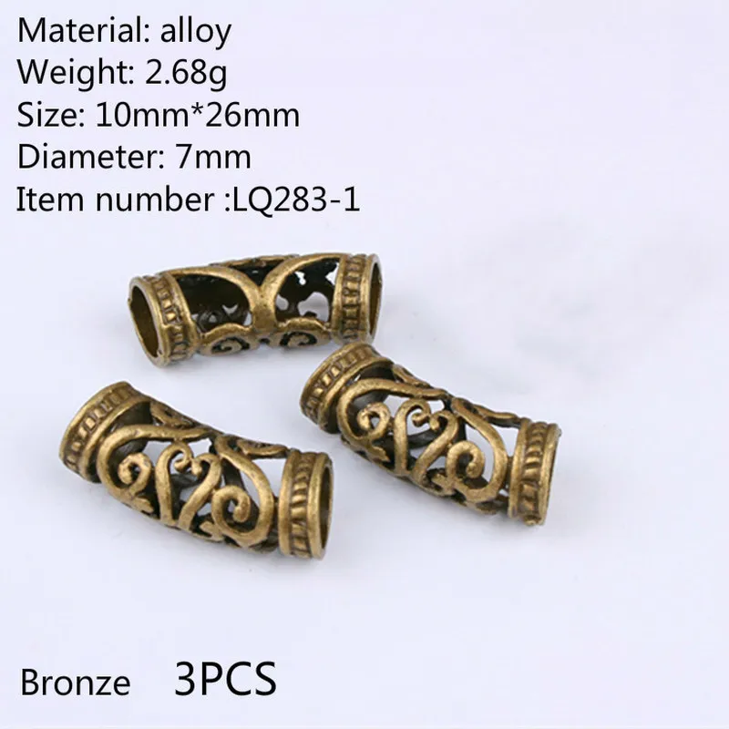 3 шт.упак. оплетка для волос страшные бусины для дредов кольца трубка около 7 мм Внутреннее отверстие античное серебро 7 видов стилей аксессуары для волос для кос