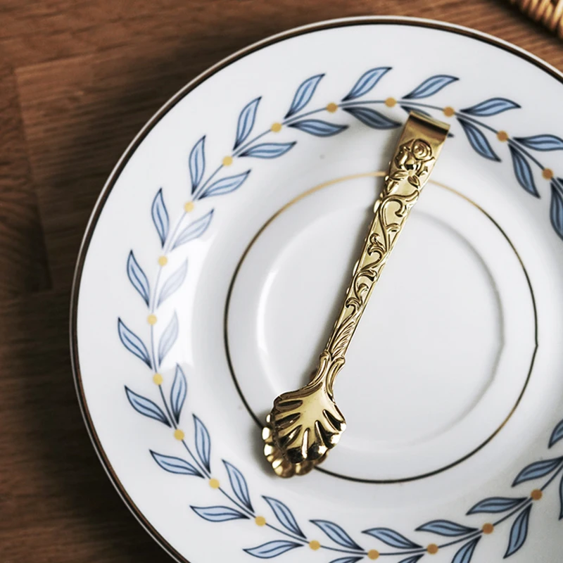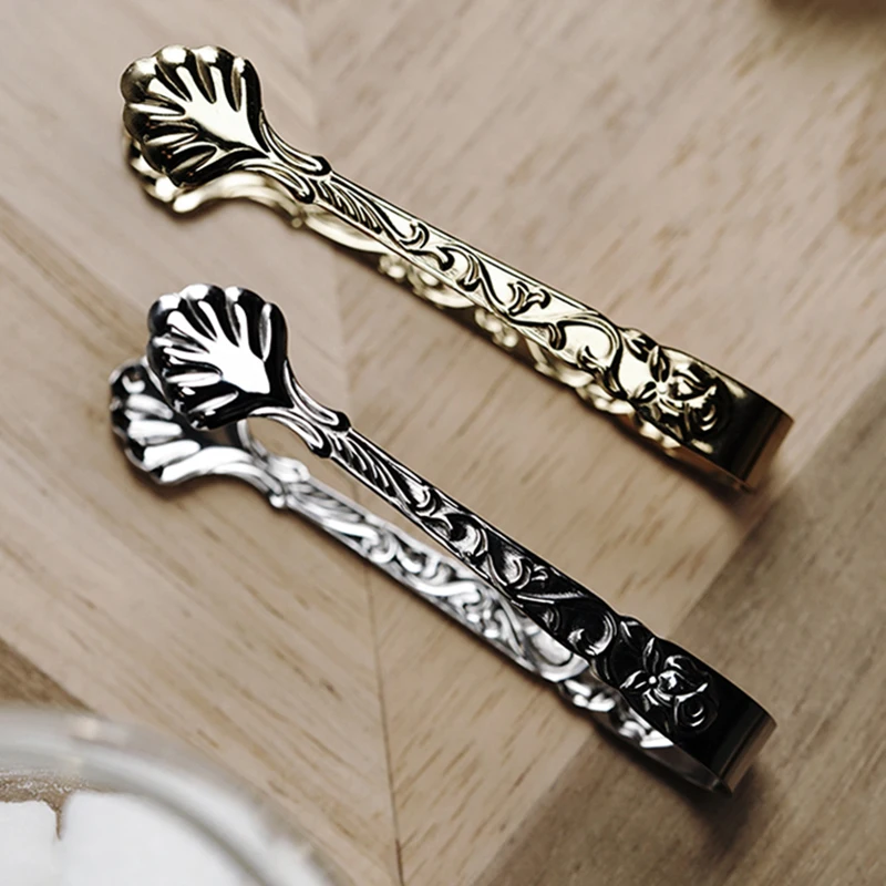 2 шт. Винтаж Роза рельеф Кофе щипцы для сахара Нержавеющаясталь кубика льда зажимы Золотой Пинцет мини Еда зажим Кухня бар аксессуары