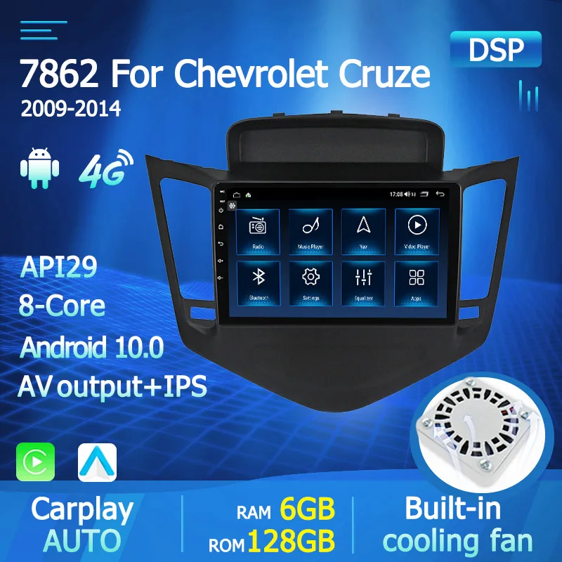 Автомагнитола 2 din для Chevrolet Cruze 128-2015, 6 + 2008 ГГц, Android 10, RDS, 4G сеть, мультимедийный видеоплеер, GPS-навигация, dvd-камера, SWC
