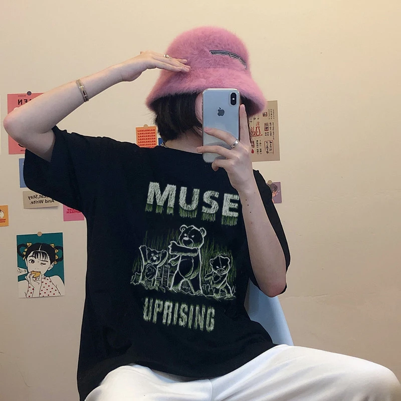 Футболка женская хлопковая, с коротким рукавом, в стиле Харадзюку