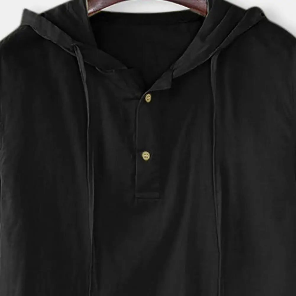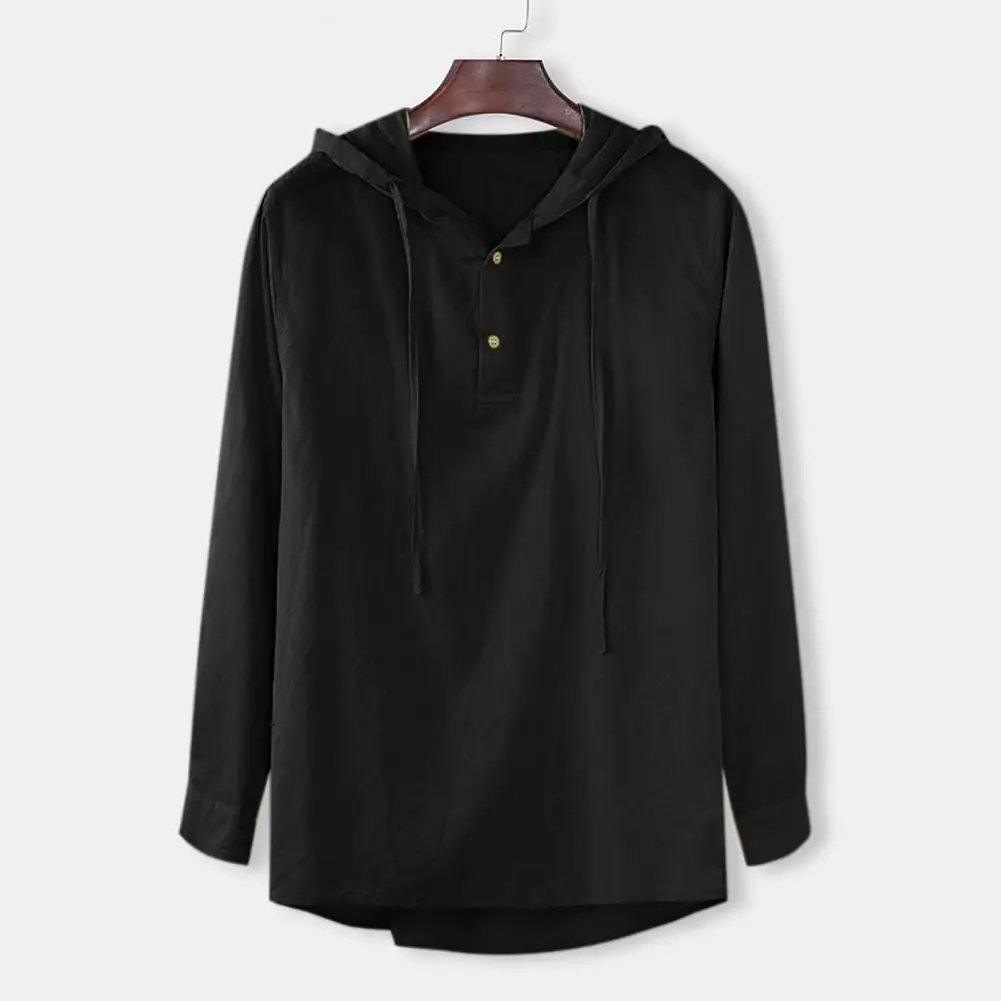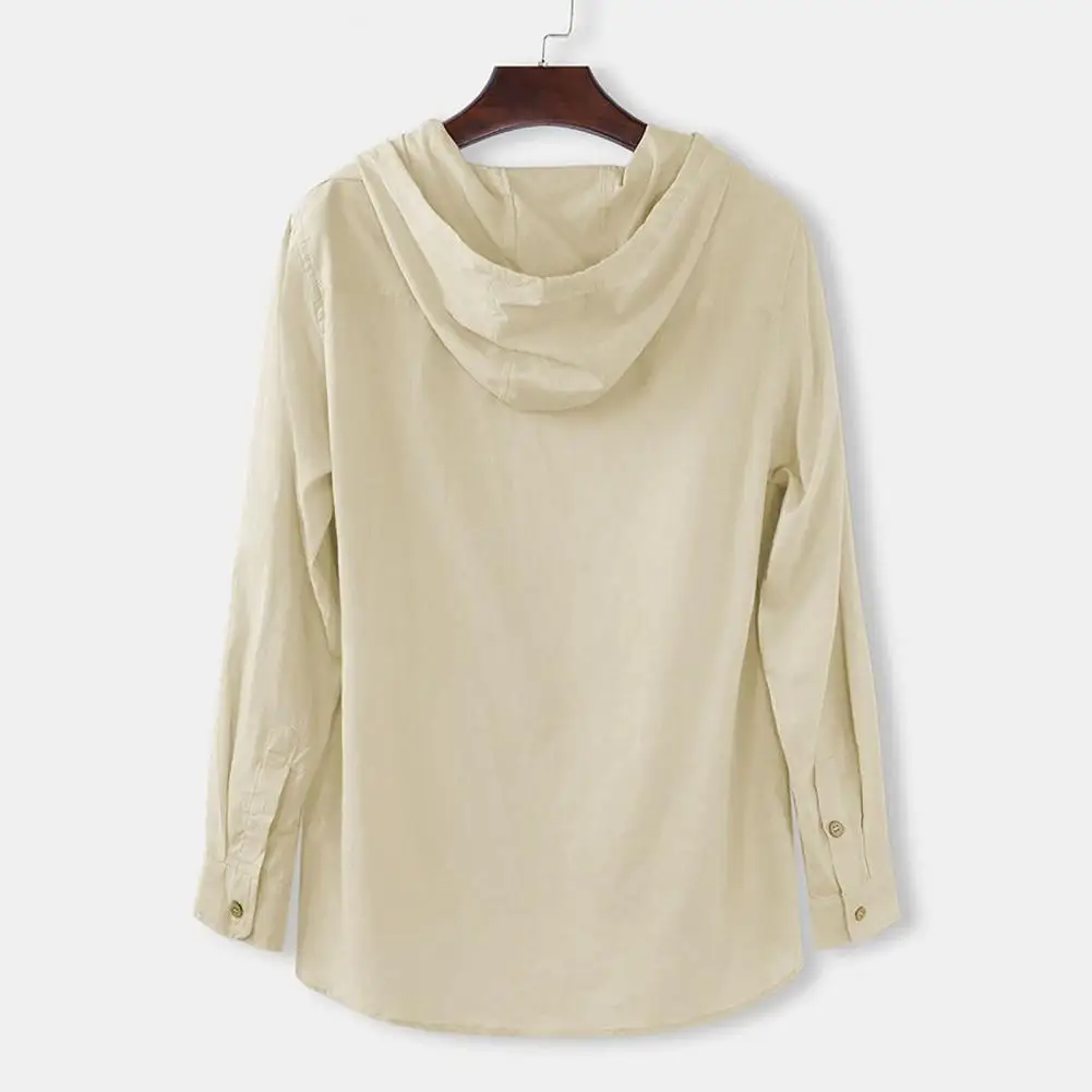 Мужская льняная рубашка с длинными рукавами, Повседневный пуловер с капюшоном в Корейском стиле, однотонная, лето 2021