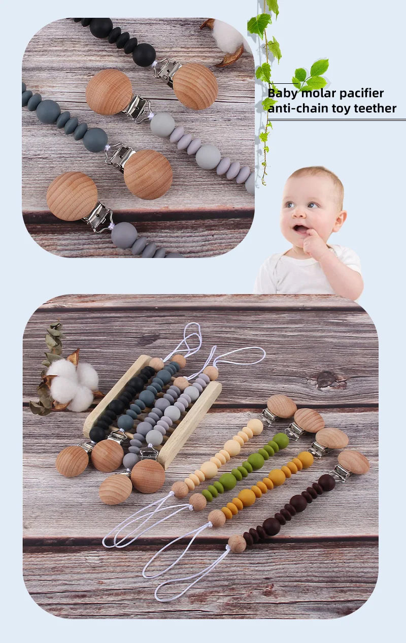Ремешок для соски-пустышки XCQGH, круглые силиконовые бусы, держатель для соски, 1 шт., из пищевого силикона