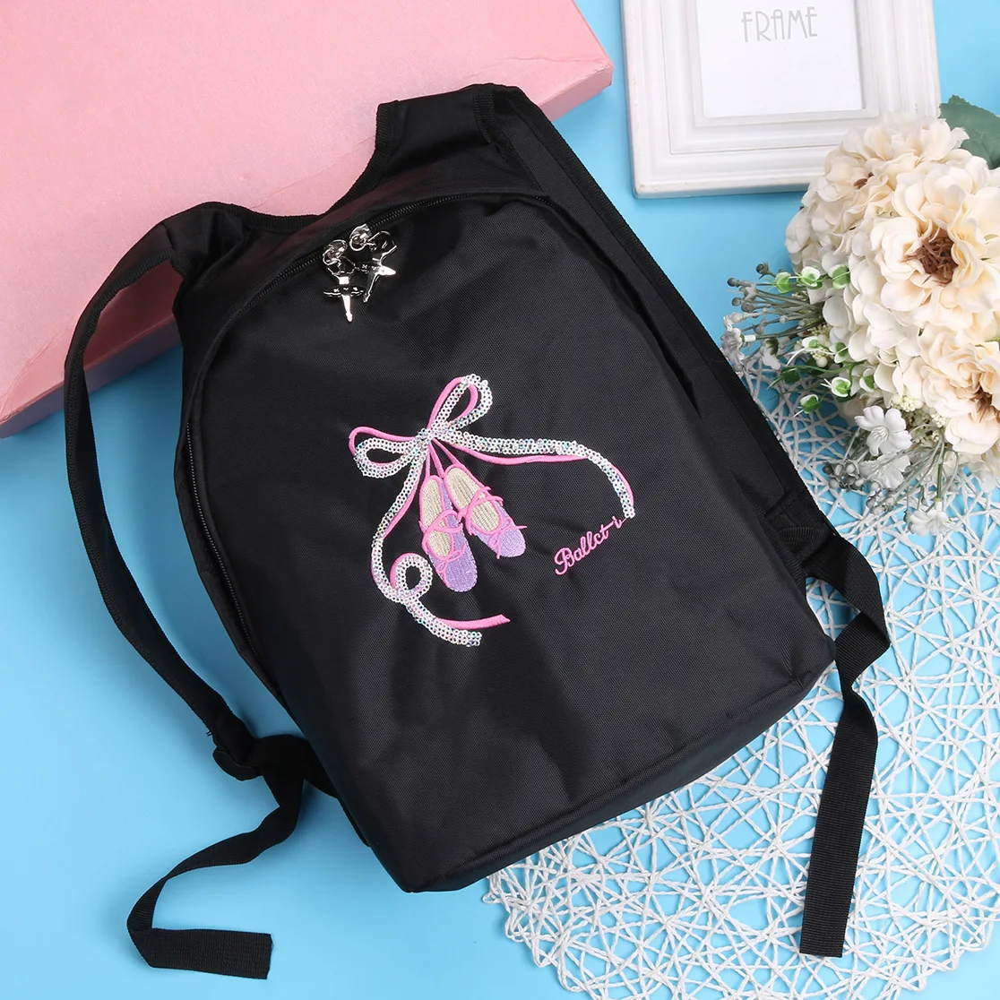 Детский Школьный рюкзак для балета и танцев для девочек; Обувь с открытым носком; Сумка на плечо с вышивкой