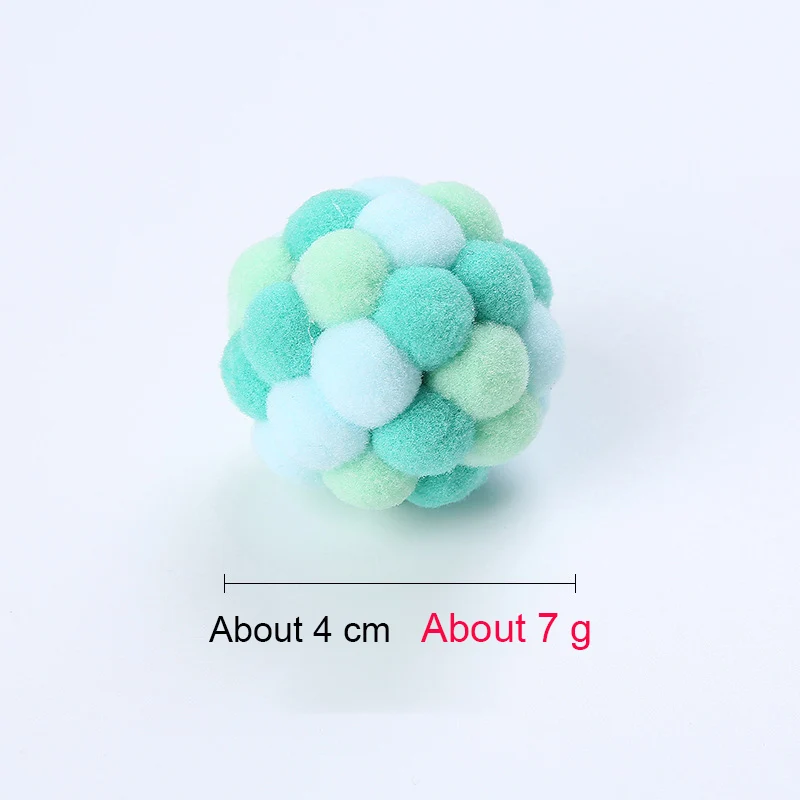 2. Разноцветные плюшевые шарики с колокольчиками, привлекают внимание кошек.