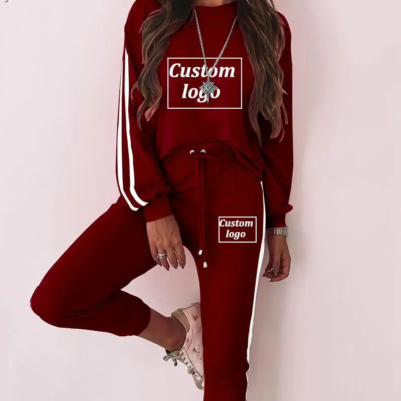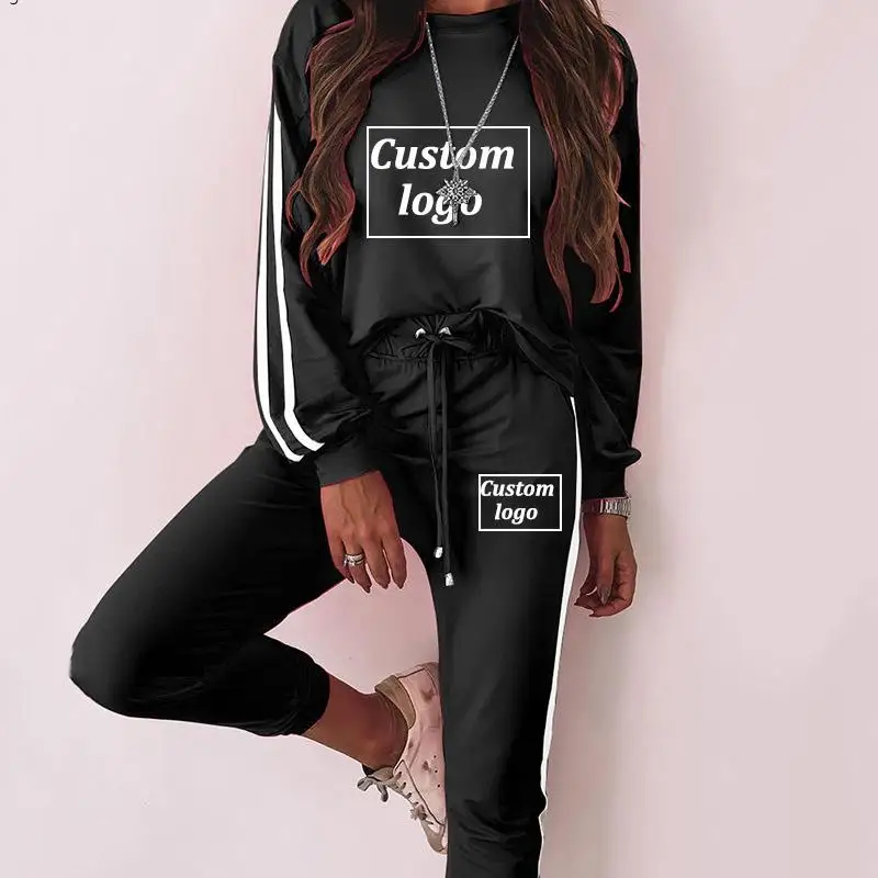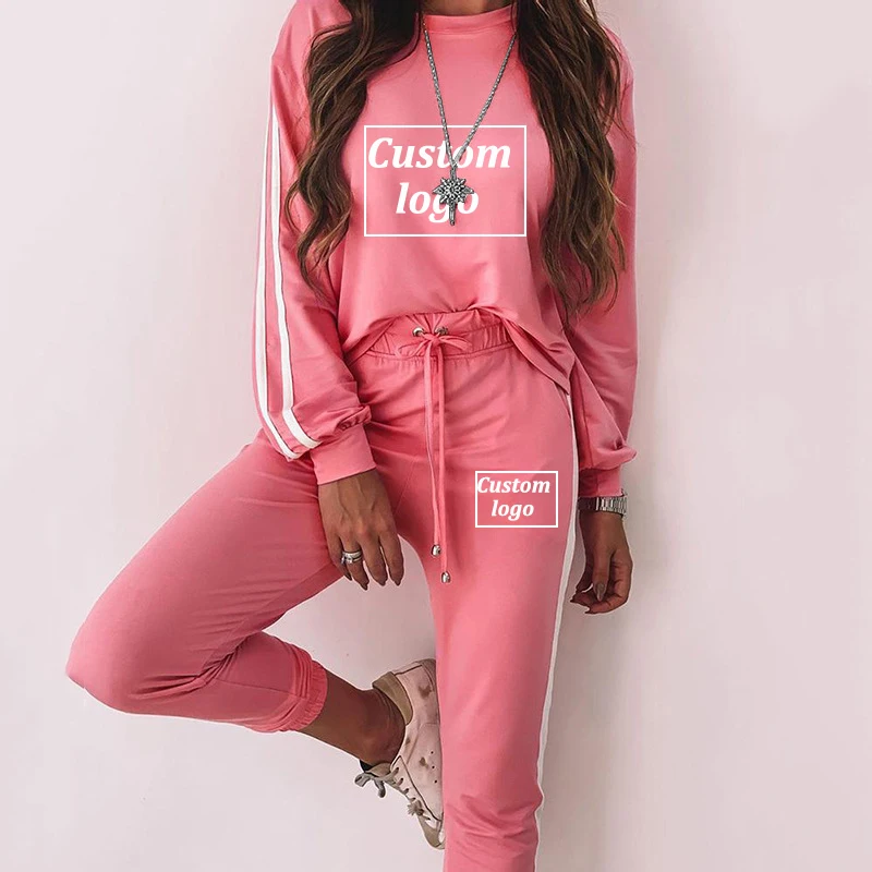 Спортивный костюм комплект из 2 предметов футболка с длинным рукавом + брюки, костюм на весну и осень, спортивная одежда Пользовательский логотип вашей компании женской одежды
