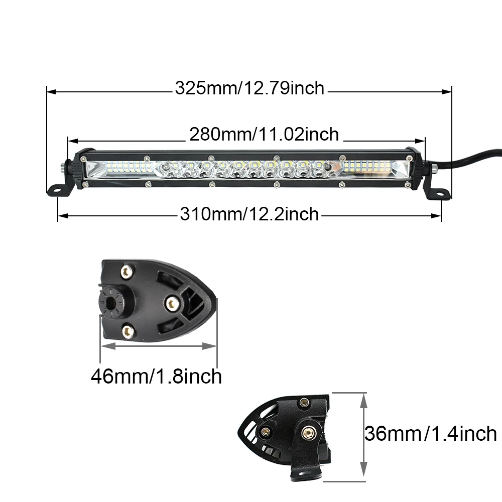 1 шт. тонкий 11-дюймовый светодиодный светильник, алюминиевый корпус, 26светодиодный светильник для автомобилей, внедорожников, кроссоверов, автобусов, снегоходов, поездов, лодок, 12 В