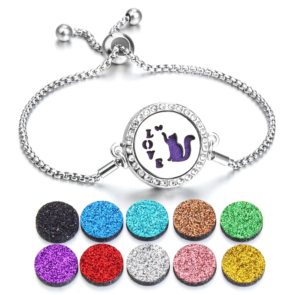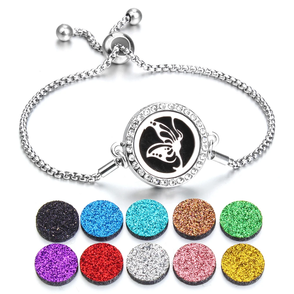 Браслет для ароматерапии эфирное масло медальон с распылителем для ароматического масла Регулируемый духи браслет кристаллический Магнитный браслет для женщин в стиле хип 10 тормозные колодки