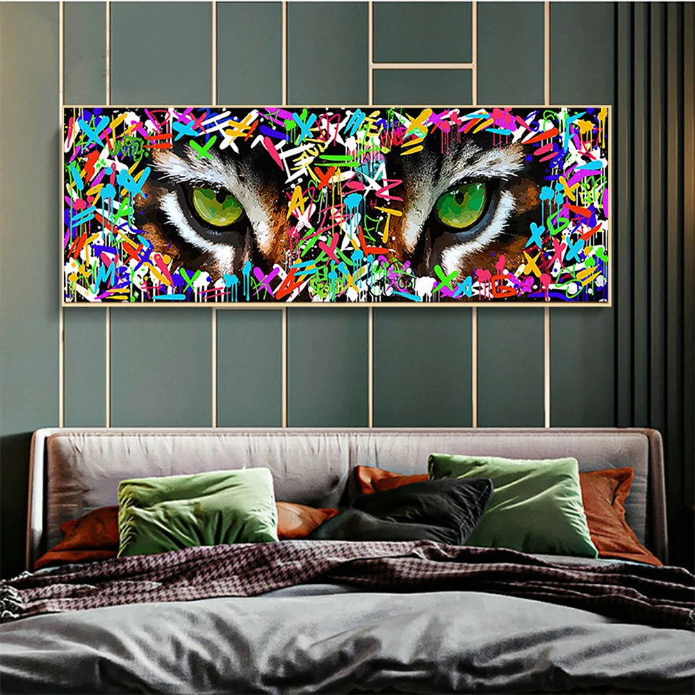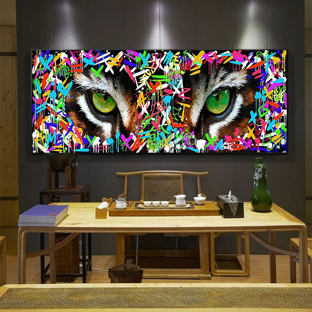 Картина на холсте с изображением тигрового глаза, граффити, настенные уличные картины, декор для гостиной, Декор для дома