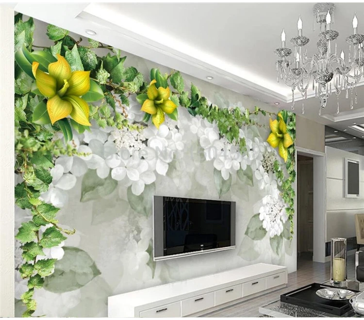 Пользовательские фото обои современные красивые идиллические цветы ротанга 3D настенная роспись Гостиная диван тв фоновая стена Papel De Parede