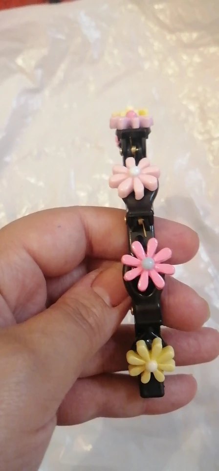 Очень быстро дошёл заказ, ободок плдходит и на голову зрослого и ребёнку от 5-7лет,заколочки все целые, брака нет.