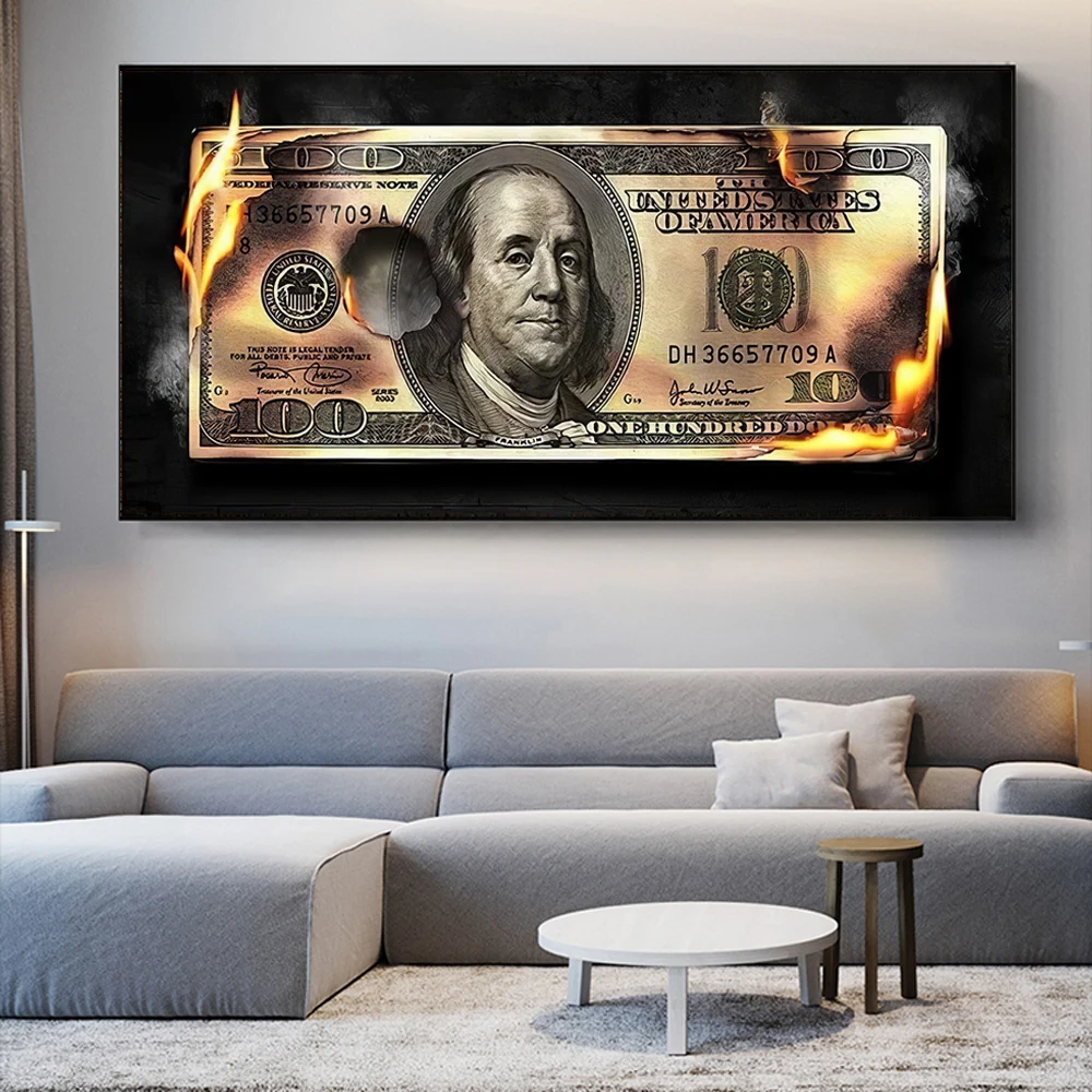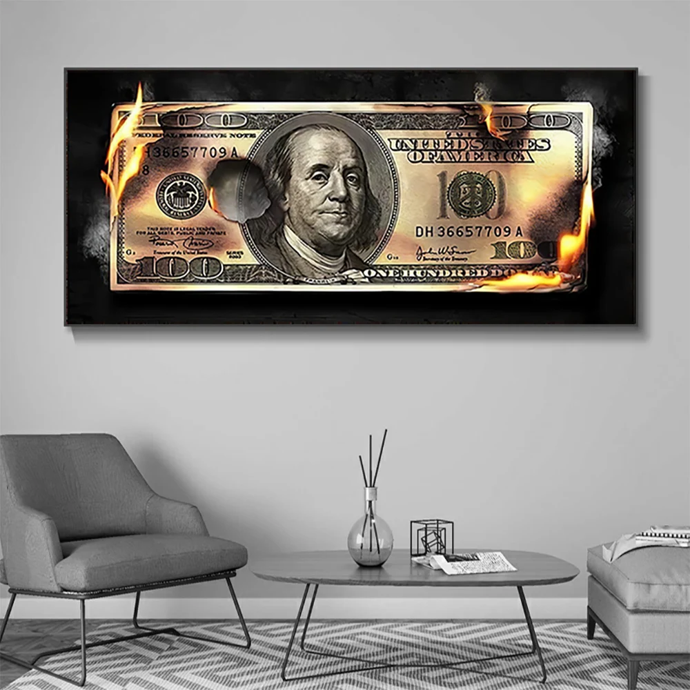 Горящая доллар современного искусства холст картины Вдохновляющие постеры и принты Творческий 100 долларов изображение Гостиная Настенный декор