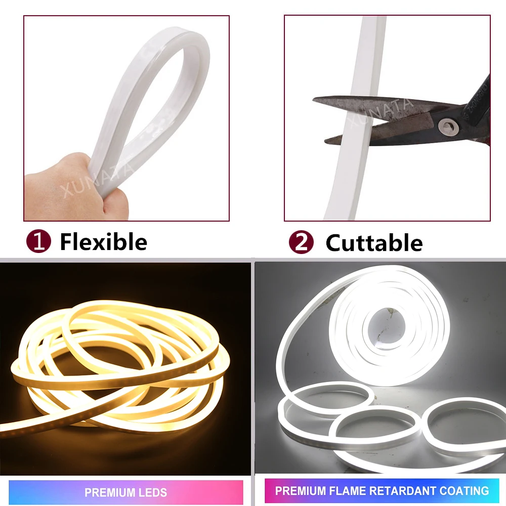 Неоновая лента, 220 В переменного тока, 12 В постоянного тока, водонепроницаемая светодиодная лента для наружного украшения, 2835 120 светодиодовм, гибкая лента, светодиодное неоновое освещение