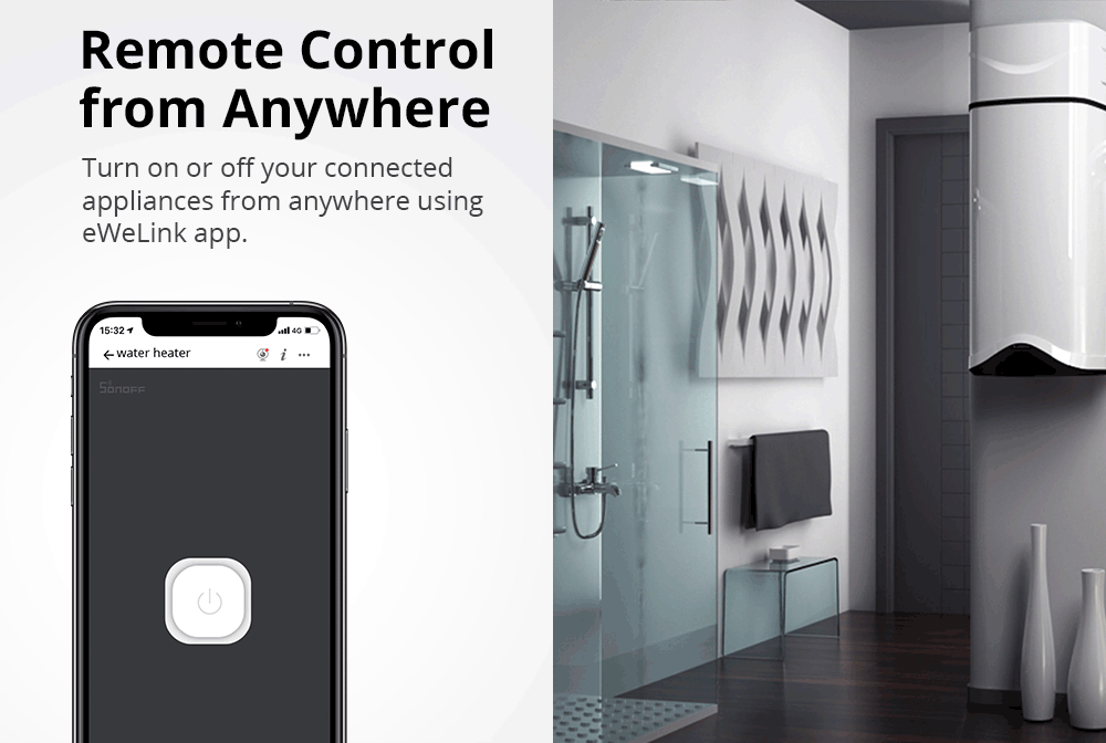 【Дистанционное управление от Anywhere】 S26R2 WiFi вилка может включить или выключить подключенные устройства из любого места с помощью приложения eWeLink