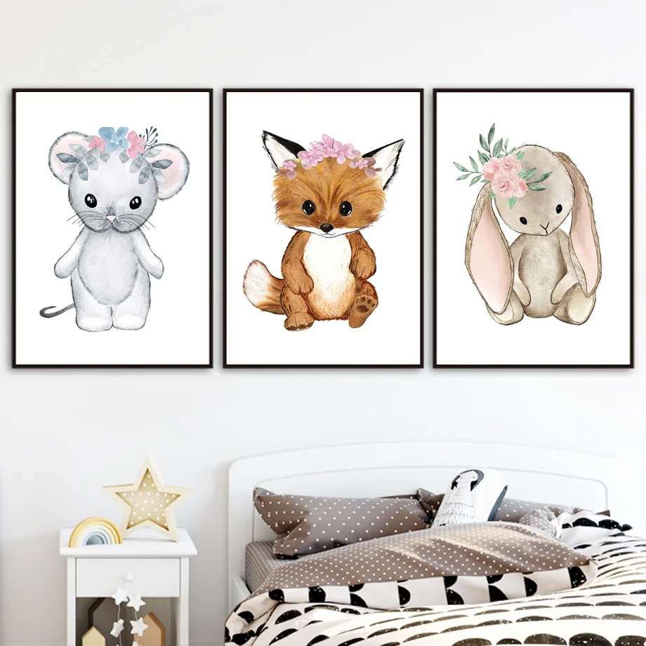 Милый Лисий Медведь Панда Кролик Мышь слон Детская настенная Картина на холсте скандинавские постеры и принты настенные картины декор детской комнаты