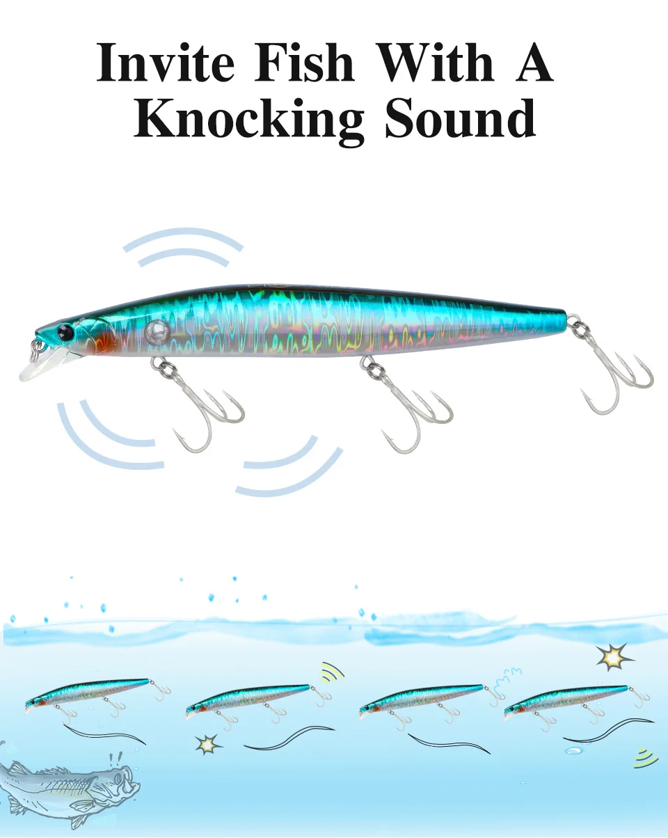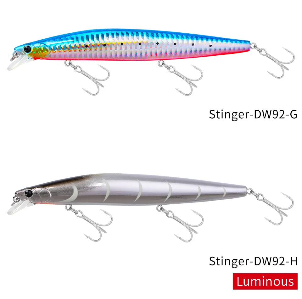 Характеристики продукта: 1. Вольфрамовая сталь центр гравитационной системы движения, сверхдлинное литье 2. Оборудование нового центра гравитационной системы движения, центр тяжести автоматически отскакивает, чтобы точно контролировать движение в воду. 3. 140S, обтекаемая форма тела создает очень большое расстояние отливки. 4. Пригласите рыбу со звуком стука 5. Быстро реагирует на работу стержня, создавая гибкую осанку плавания, которая имеет высокую производительность плавания. 6. Светящийся дизайн, удовлетворяет ваши различные потребности 7. 3 крючка для соленой воды, хорошее проникновение и устойчивость к коррозии, это не дает рыбам никаких шансов на выход. Информация о продукте: 1. Наименование: DW92 2. Тип: длинная приманка для ловли рыбы 140S 3. Длина: 140 мм 4. Вес: 26 г 5. Диапазон: полный плавательный слой 6. Центр тяжести: Вольфрамовая сталь центр гравитационного движения системы 7. Скорость погружения: 32 см/с 8. Крючки: #4 9. Цвет: Col.A Col.B Col.C Col.D Col.E Col.F Col.G Col.H Col.I Col.J Col.K Col.L