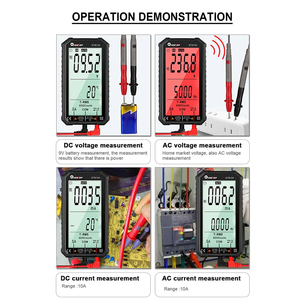 Цифровой мультиметр ET8134, 4,7 дюйма, ЖК-дисплей, Измеритель постоянногопеременного тока, напряжения, емкости, сопротивления, Бесконтактный индикатор напряжения, Прямая поставка