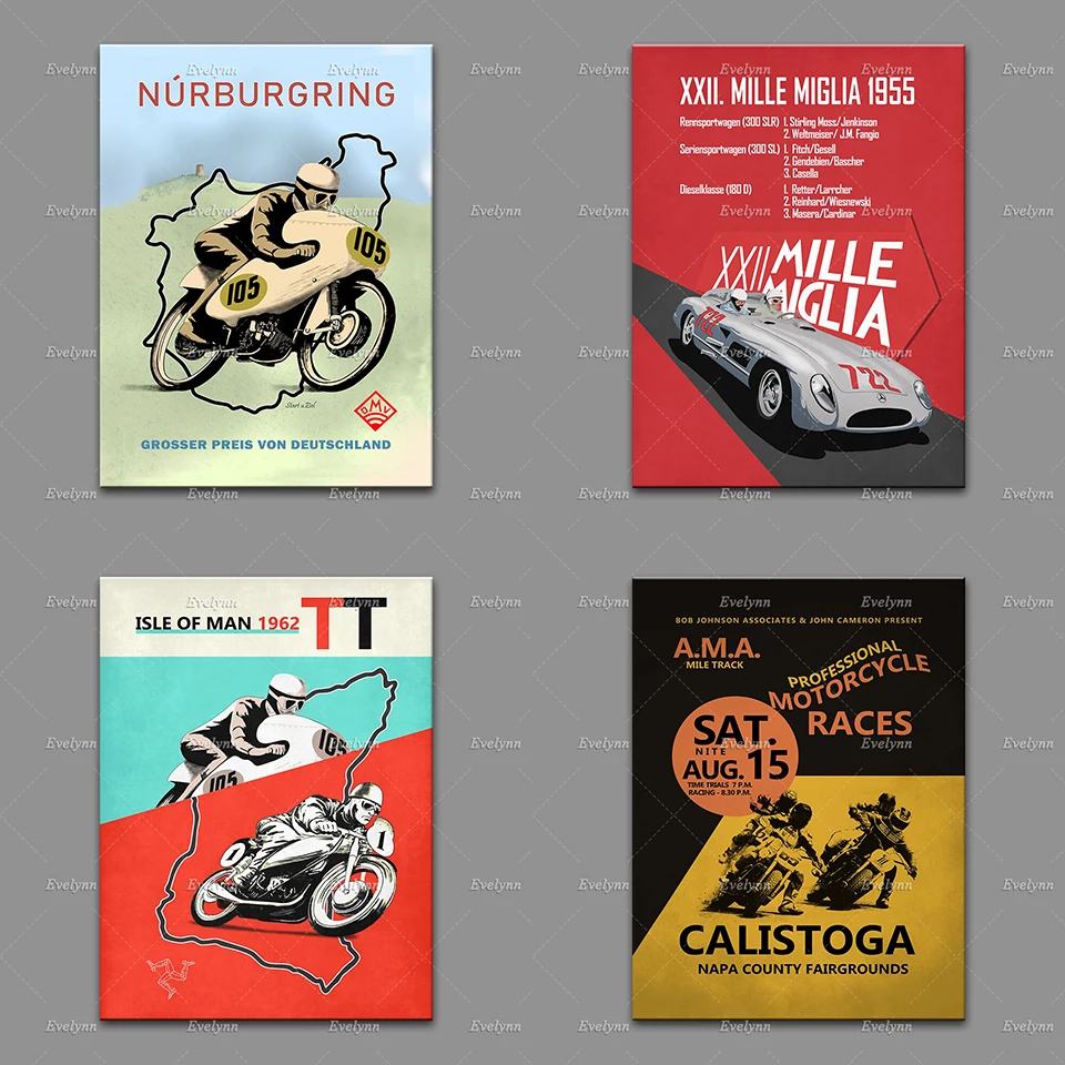 Винтажные Гонки на мотоциклах, итальянские гонки на мотоцикле, Ретро плоский трек на мотоциклах, гоночные принты на стену, холст, плакат, Декор