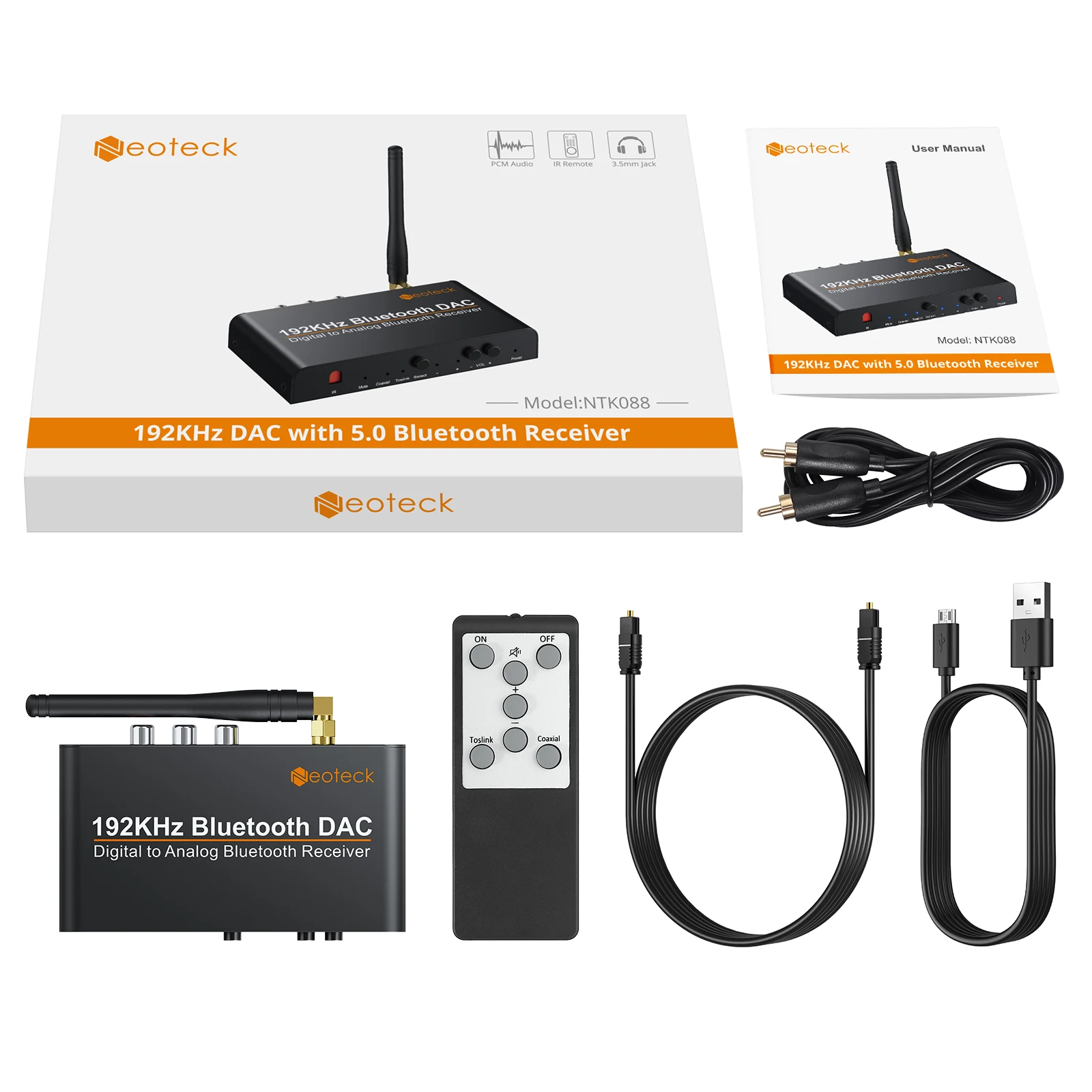 ЦАП-преобразователь с пультом дистанционного управления, 192 кГц, Bluetooth, цифро-аналоговый аудиоконвертер, коаксиальный Toslink в LR RCA, разъем 3,5 мм