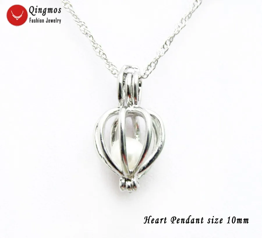 Жемчужное ожерелье с подвеской в виде сердца Qingmos Wish для женщин, с подвеской в виде клетки, жемчужное ожерелье в виде устрицы, чокеры, подарочная коробка