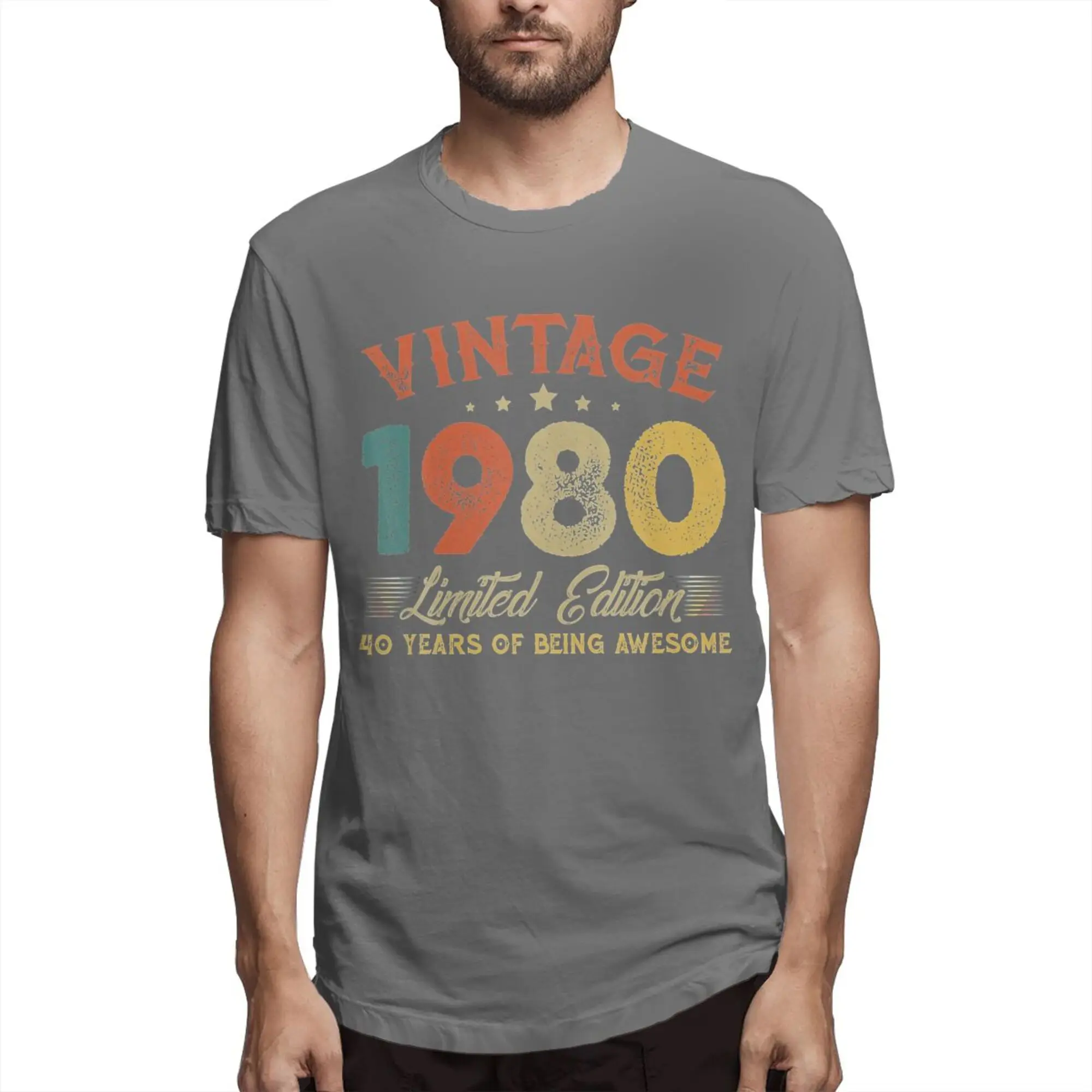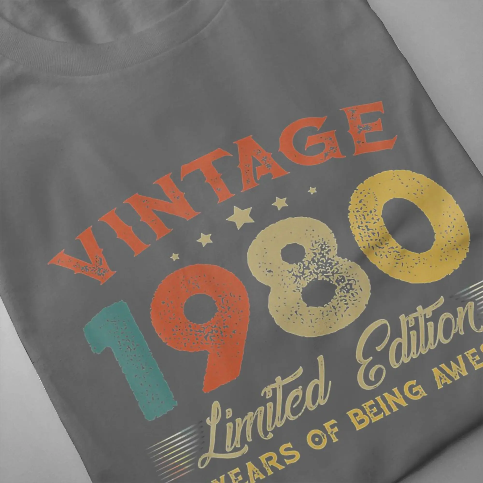 Мужская винтажная футболка, хлопковая Футболка с круглым вырезом, 40 лет, 1981