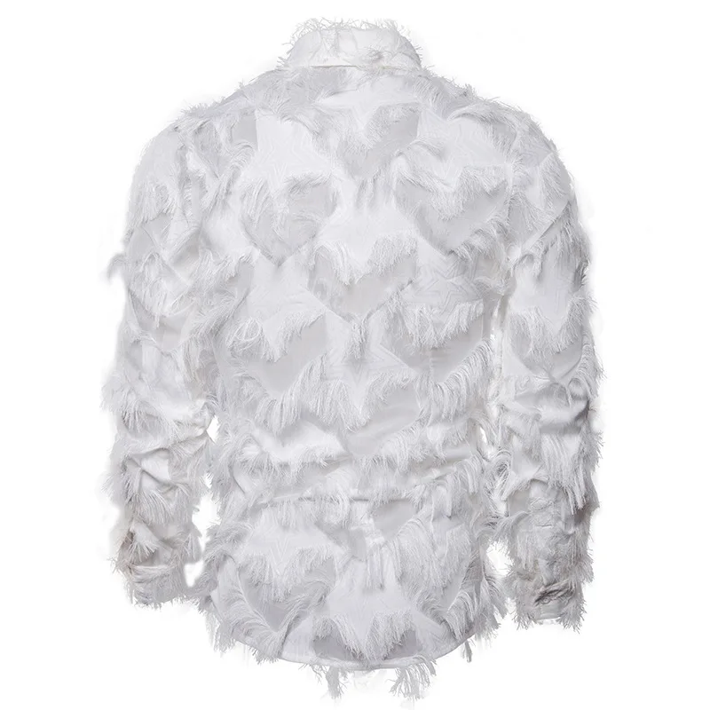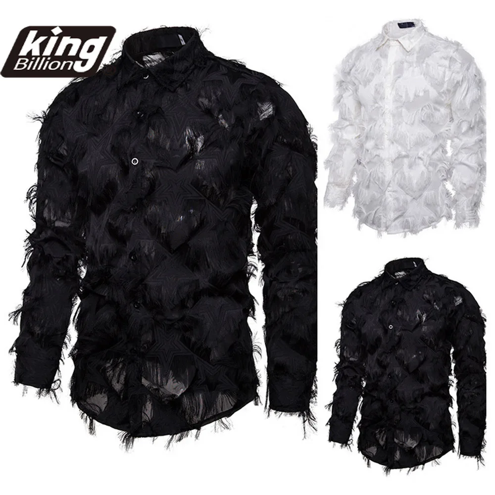 Рубашка мужская с отложным воротником, Повседневная модная сорочка ручной работы из трехмерной ткани с перьями и длинными рукавами, приталенный силуэт, европейские размеры, 2022