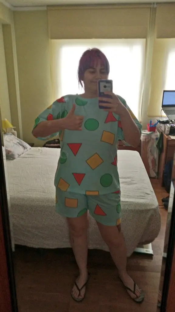 Заказ прибыл очень быстро, хорошего качества и цены. Размер 5XL, рубашка довольно широкая, а штаны плотные. Если вам нравится спать широко, вы не будете разочарованы, штаны имеют карманы с обеих сторон. Если вы фанат Shin Chan, я рекомендую 100% пижаму.