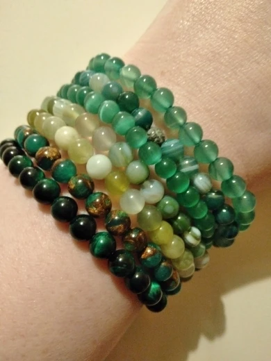 Браслеты женские и мужские эластичные с бусинами из зеленого натура...