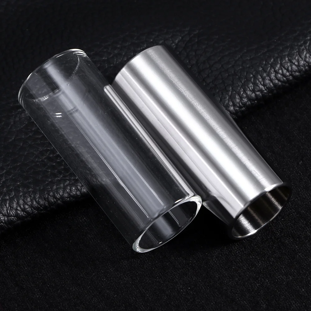 Слайд стеклянный 60 мм и слайд из нержавеющей стали, слайд среднего узкого места для гитары, баса (прозрачный и серебристый), 2 шт.