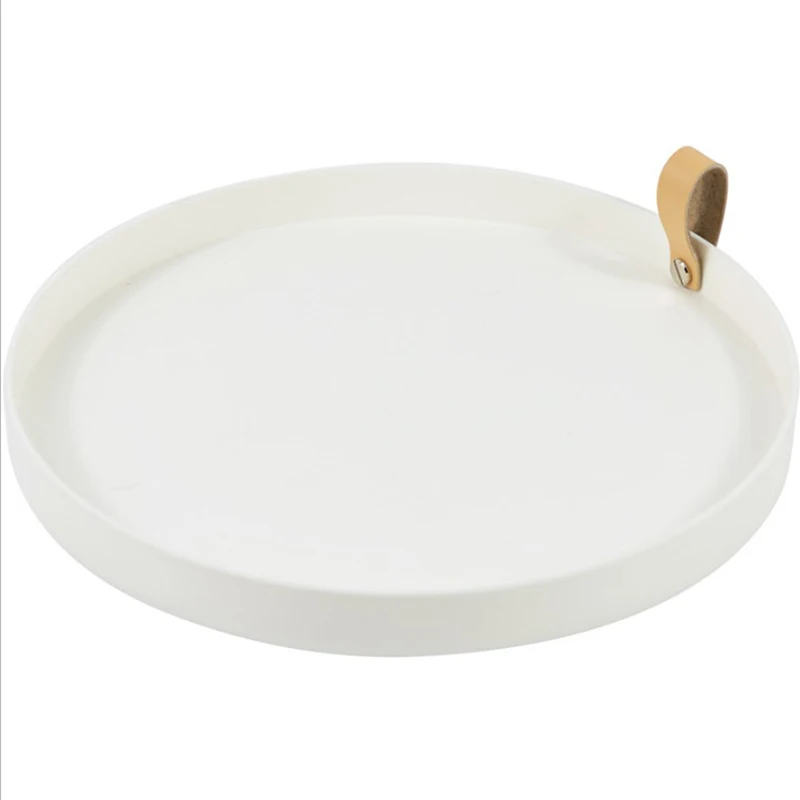 Простой однотонный круглый поднос для хранения, портативный столик для спальни, декоративная косметика