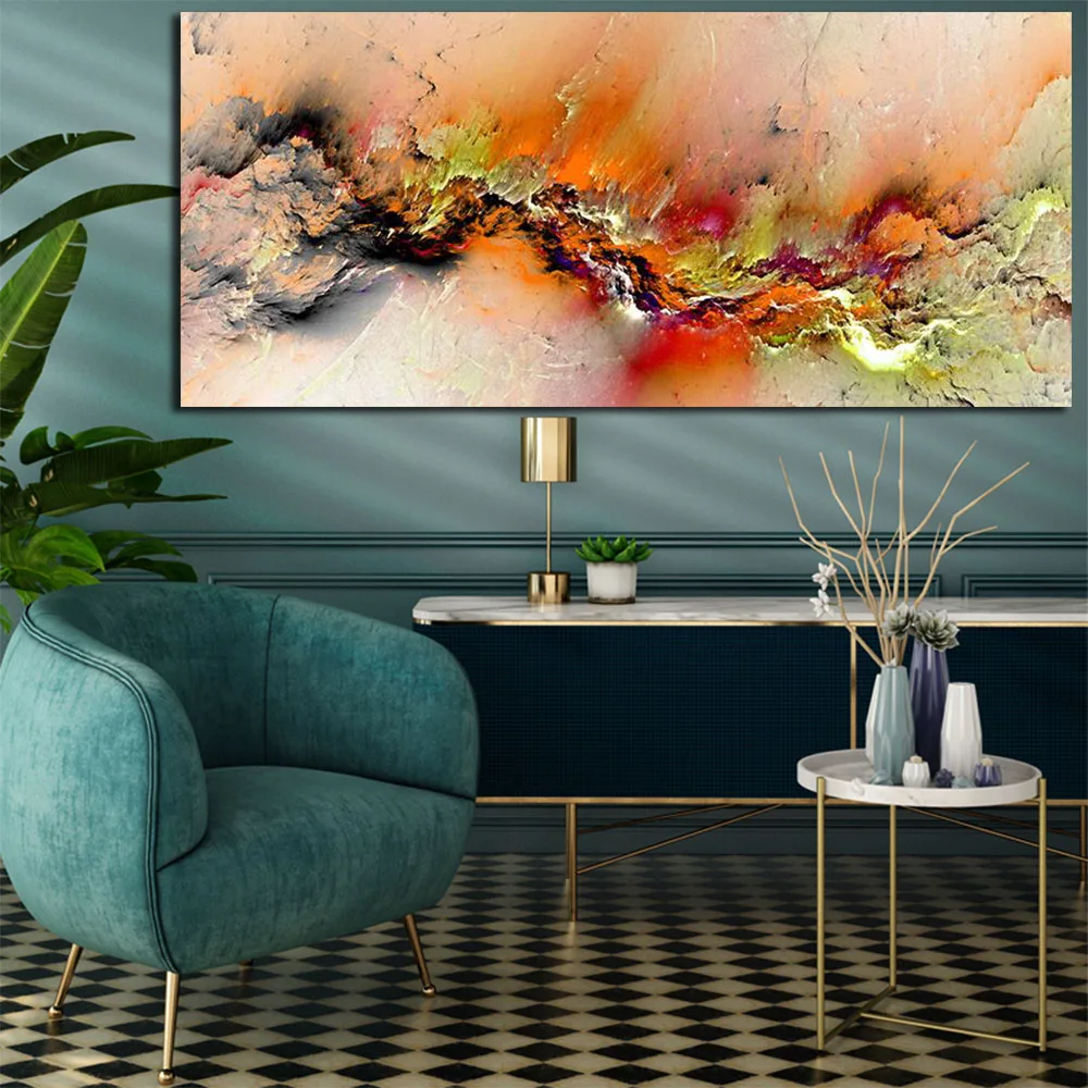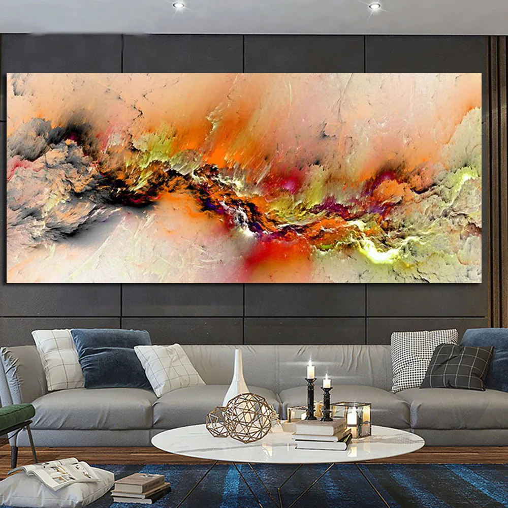 Апельсиновая масляная живопись, облако, абстрактная картина на стен...