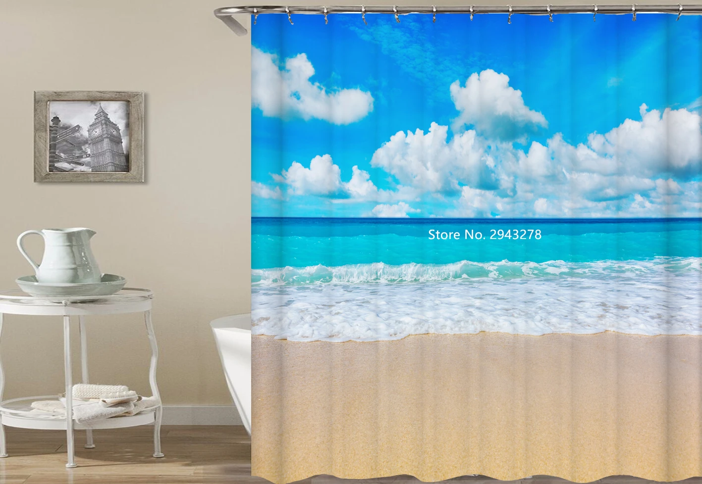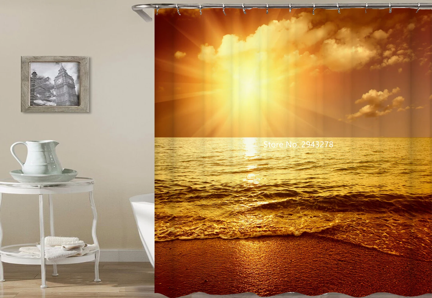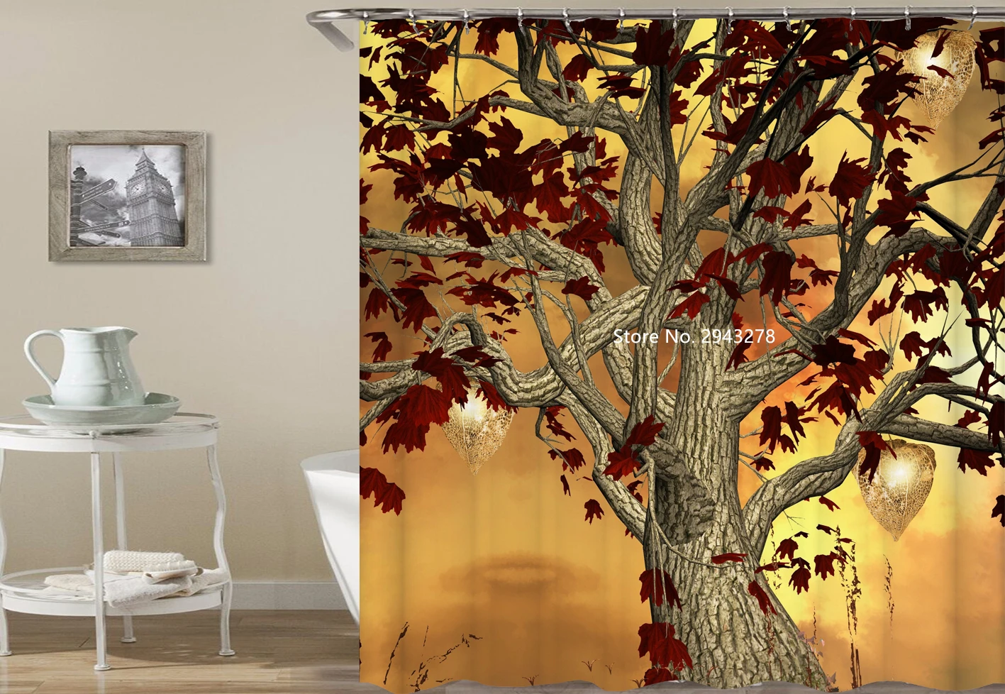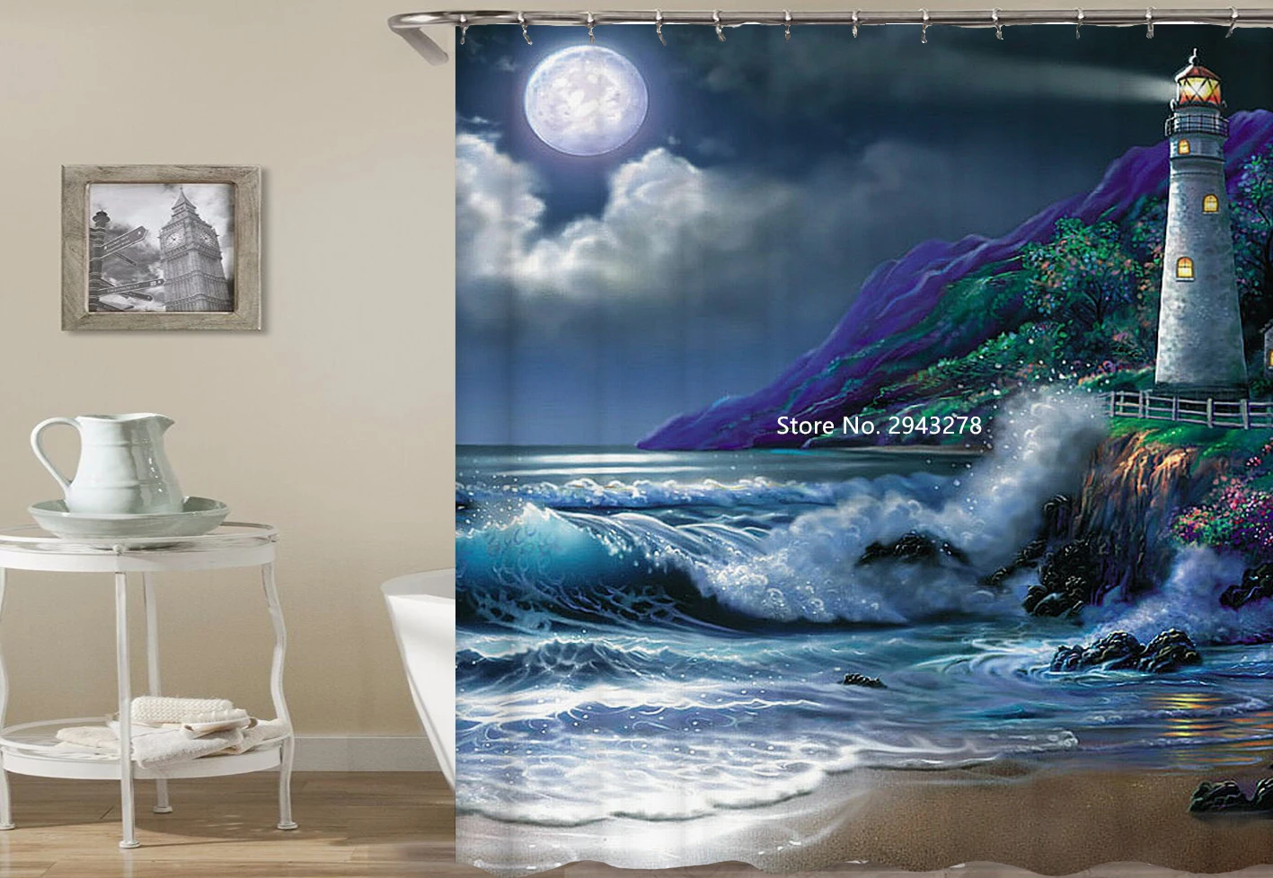 Водонепроницаемая моющаяся шторка для душа с красивым ландшафтным рисунком, с крючком