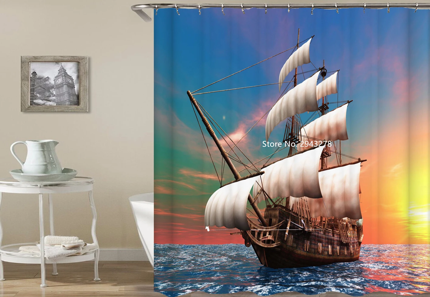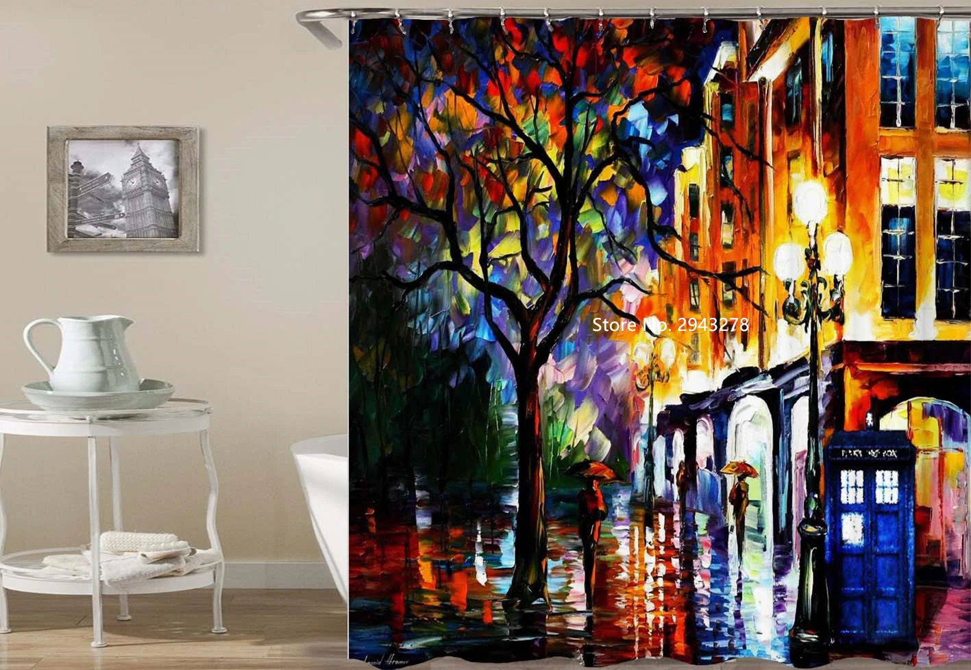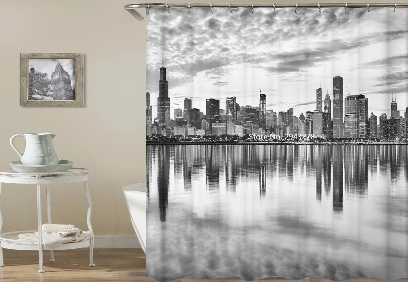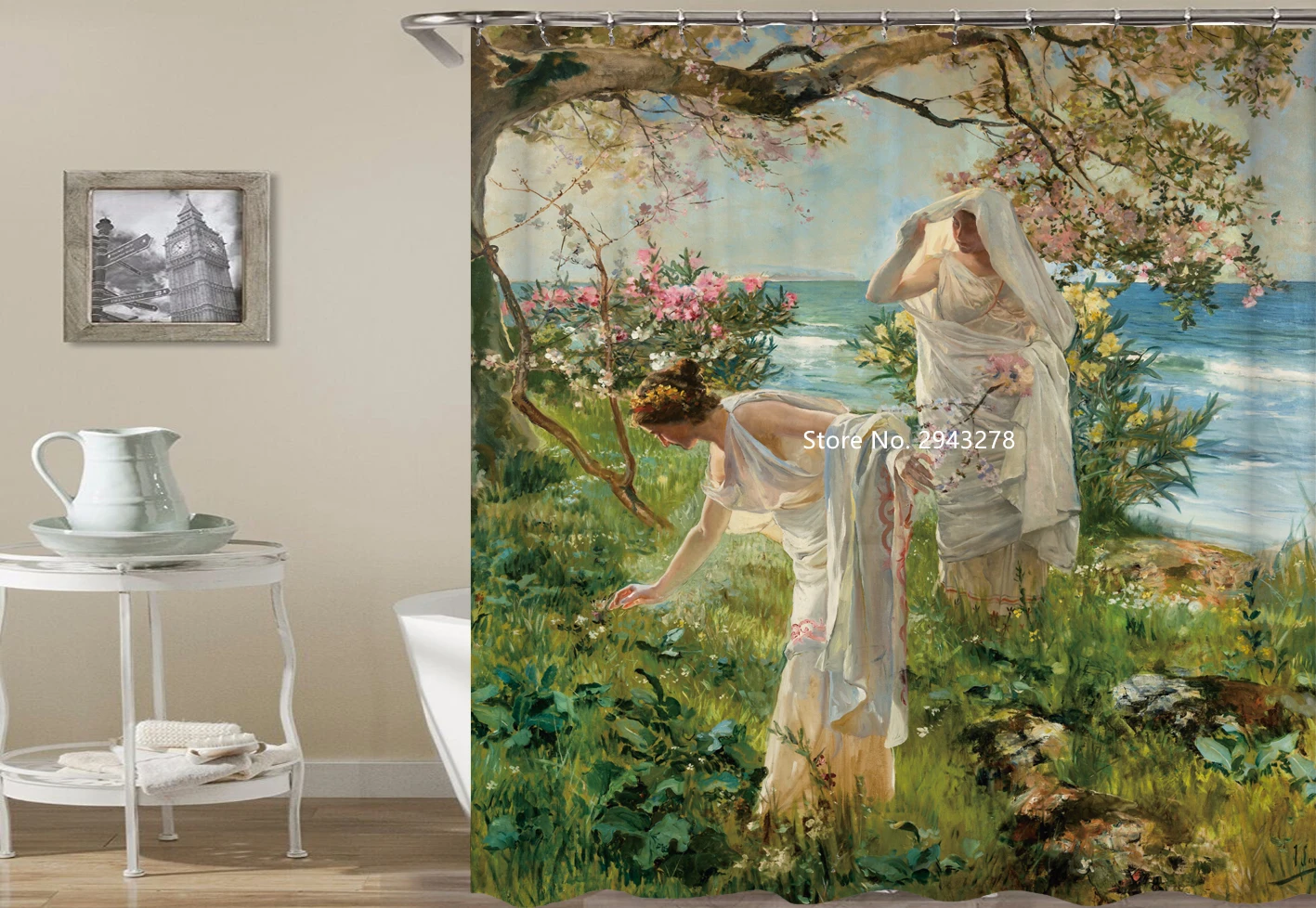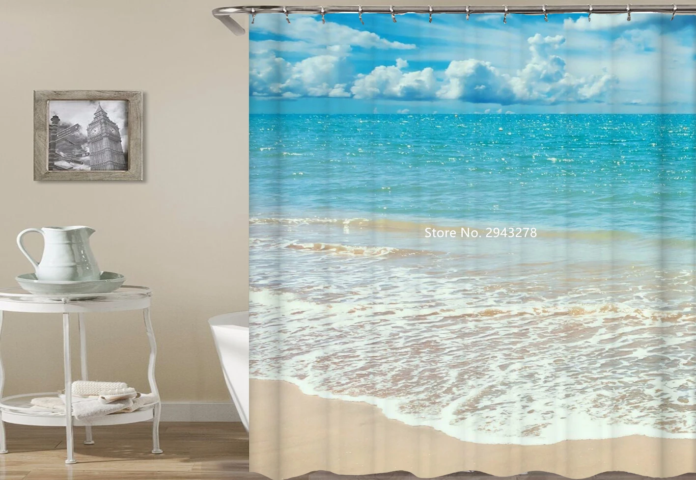 Водонепроницаемая моющаяся шторка для душа с красивым ландшафтным рисунком, с крючком