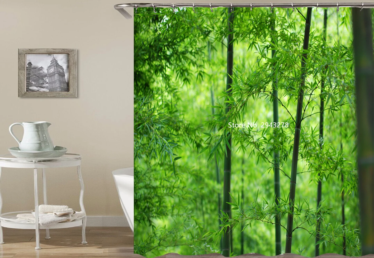 Занавеска для душа, с 3D-принтом, с зелеными растениями, пейзажем, ...