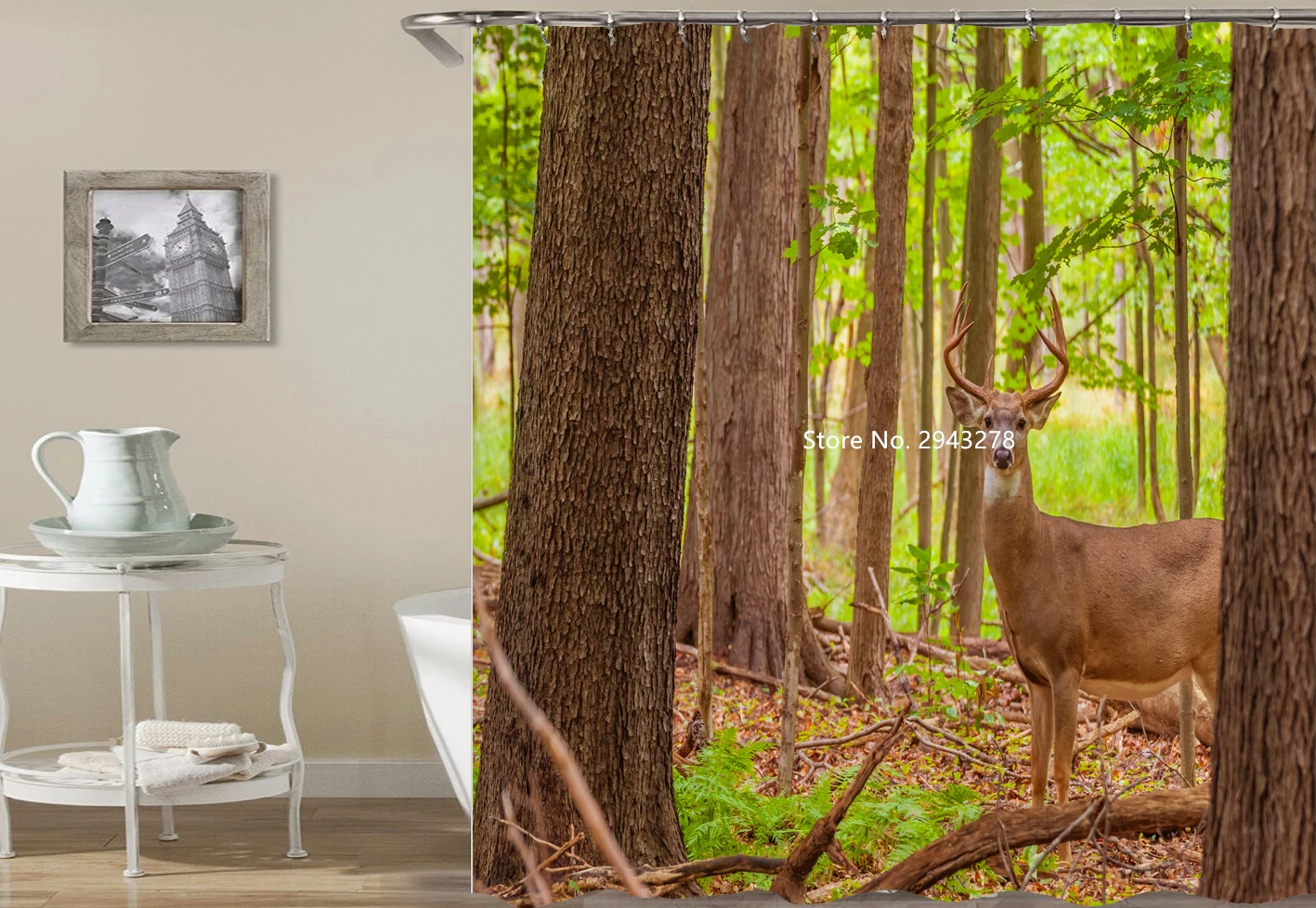 Современная занавеска для душа с 3D-принтом леса, занавеска для ван...