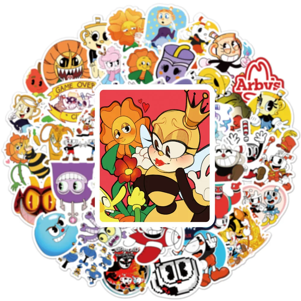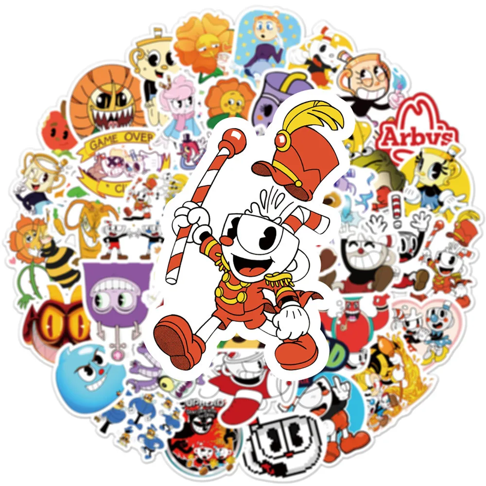 50 шт.упак. Горячие игры Cuphead наклейки для водонепроницаемый ноутбук скейтборд компьютер Стикеры для багажа мультфильм стикер