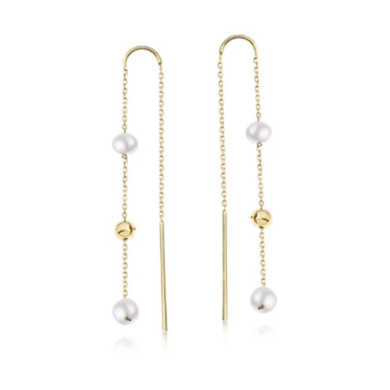 Висячие серьги BOAKO из серебра 925 пробы, с жемчужными бусинами, на длинной цепочке