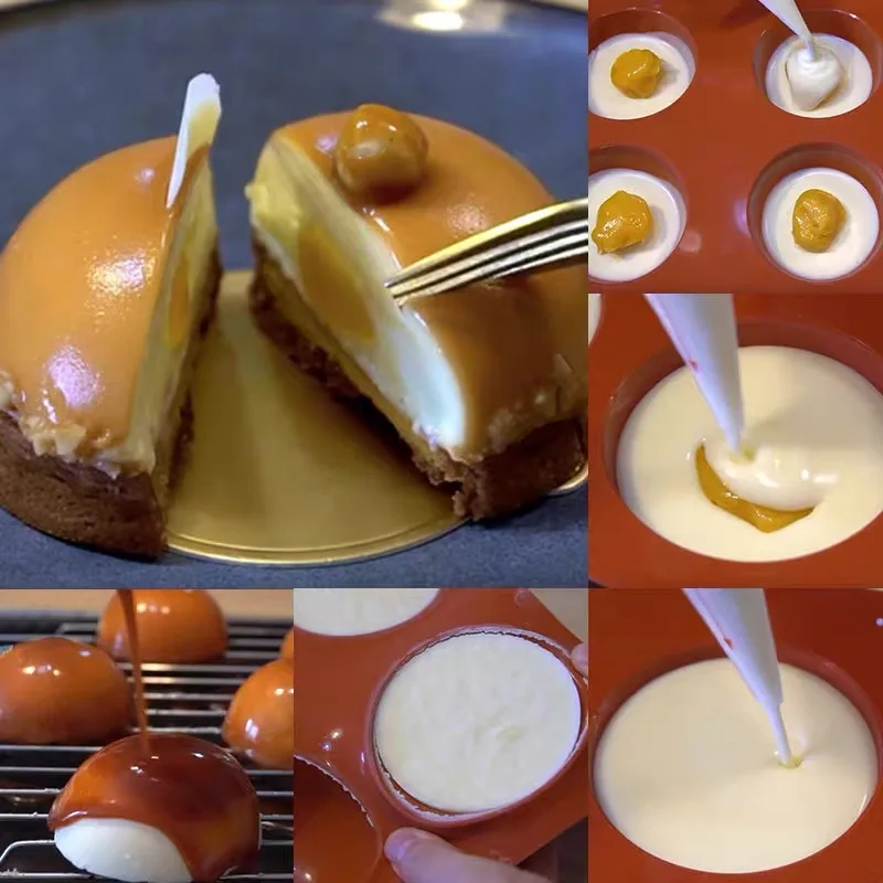 6. При выпечке силиконовая форма должна быть открыта отдельно на плоском лотке для выпечки. Не позволяйте пресс-формы, дав коже высохнуть-запеченные. Например, если у вас есть форма с шестью звеньями, Вы заполняете только 3 формы. Пожалуйста, заполните остальные 3 пустые формы водой.