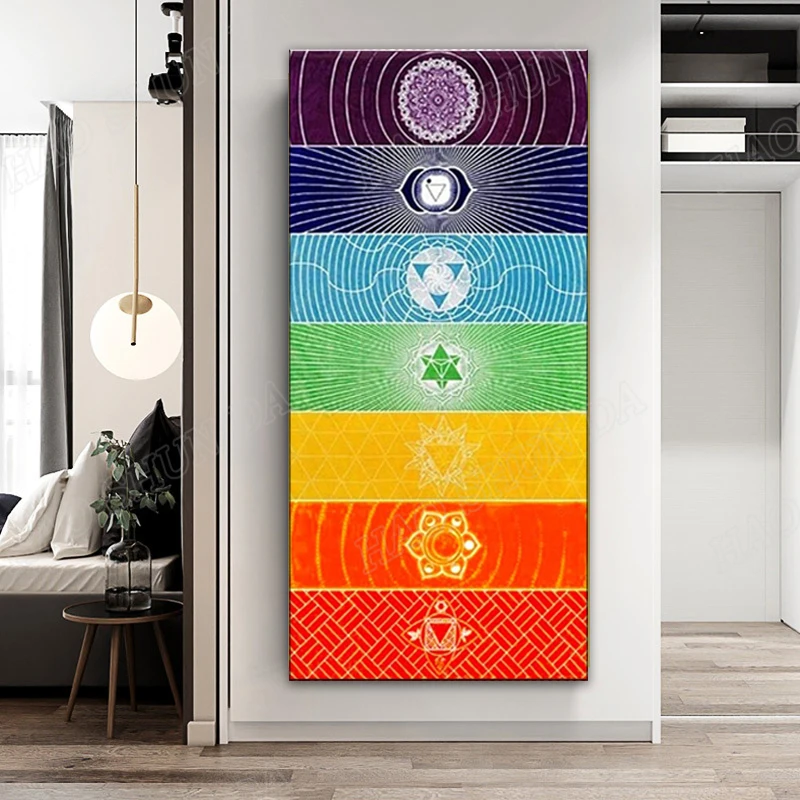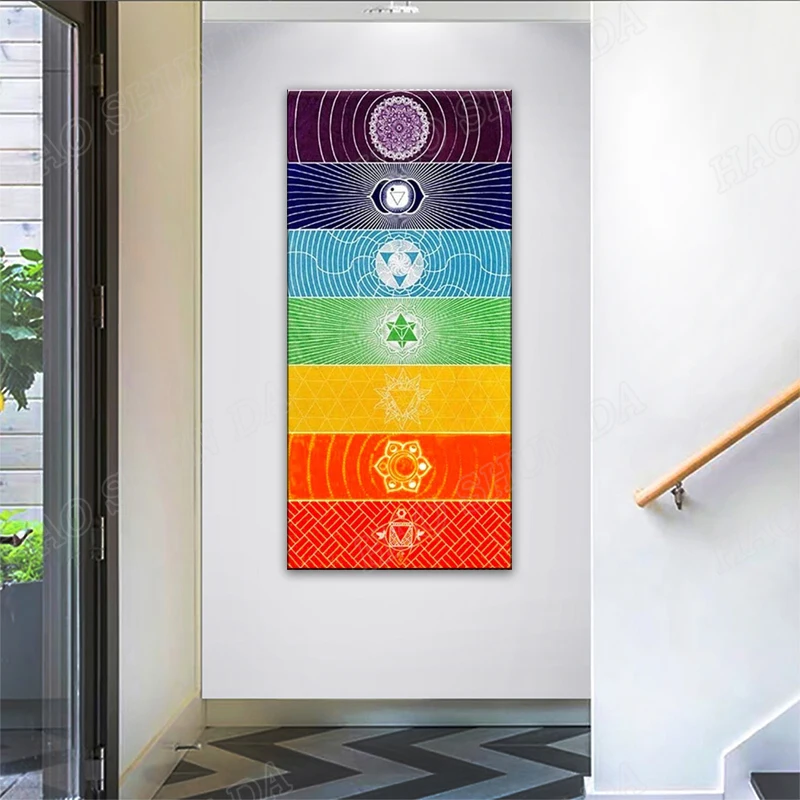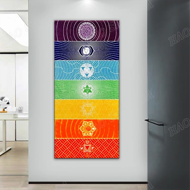 7 чакр, символов, гид, печать на холсте, Постер для йоги, иллюстрац...