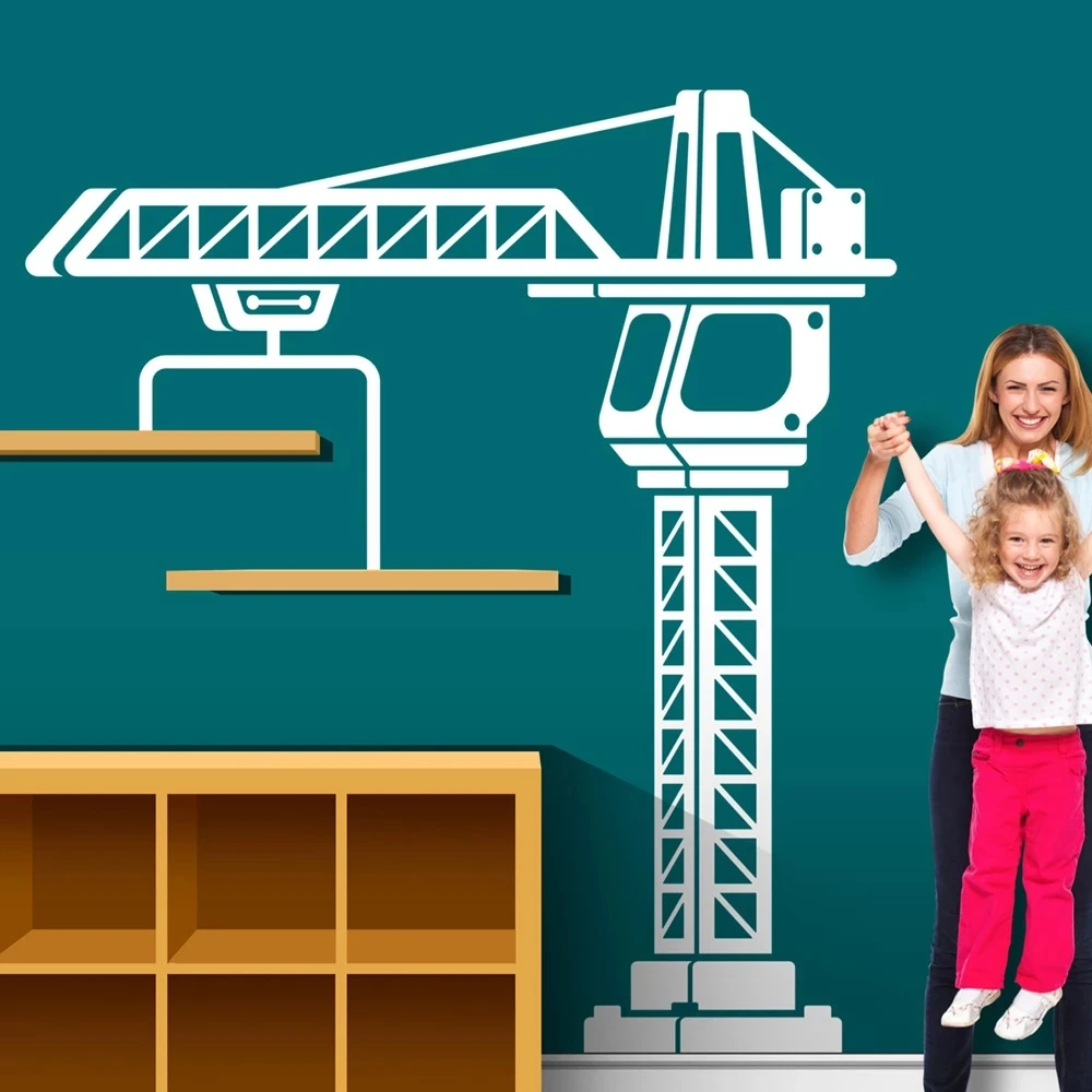 Строительные настенные наклейки DW7523 с журавлем для детской комнаты, наклейки с большим грузовиком и журавлем для комнаты мальчика, виниловые украшения для дома