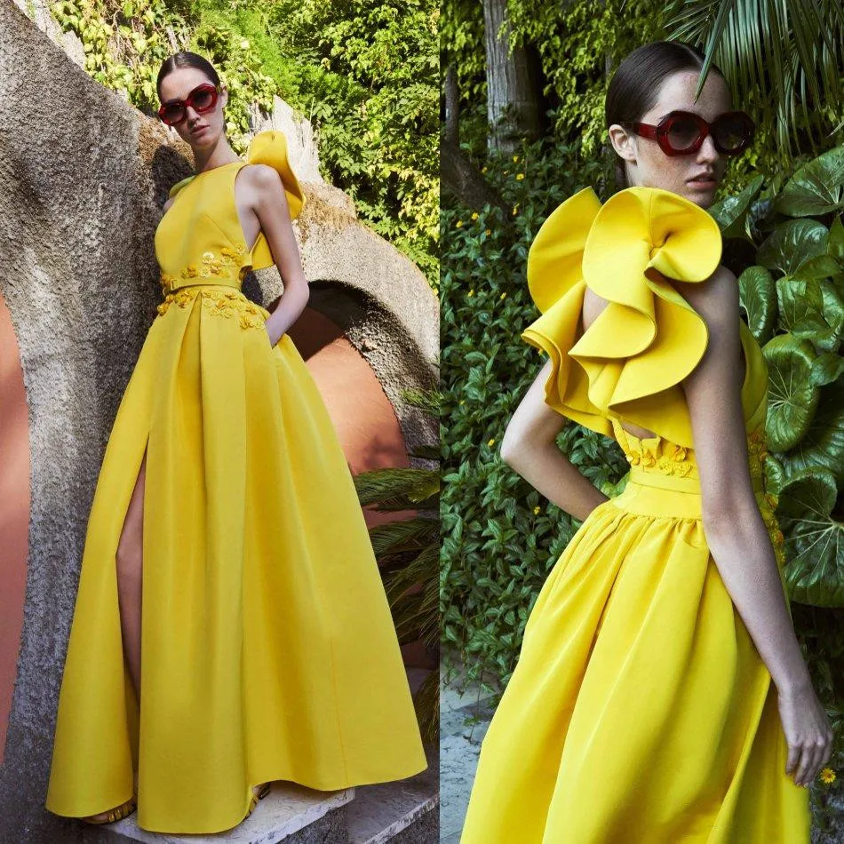 Потрясающие желтые вечерние платья, плиссированное платье-Русалка с...