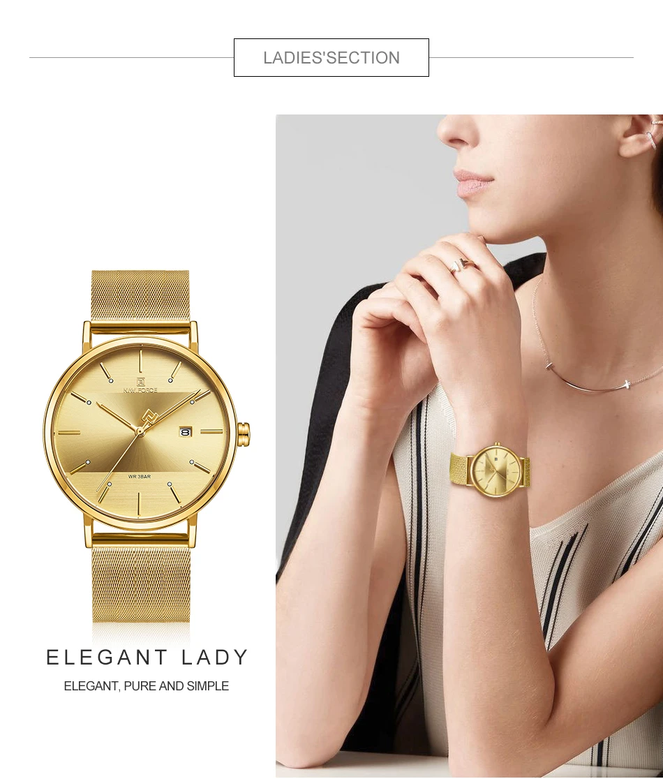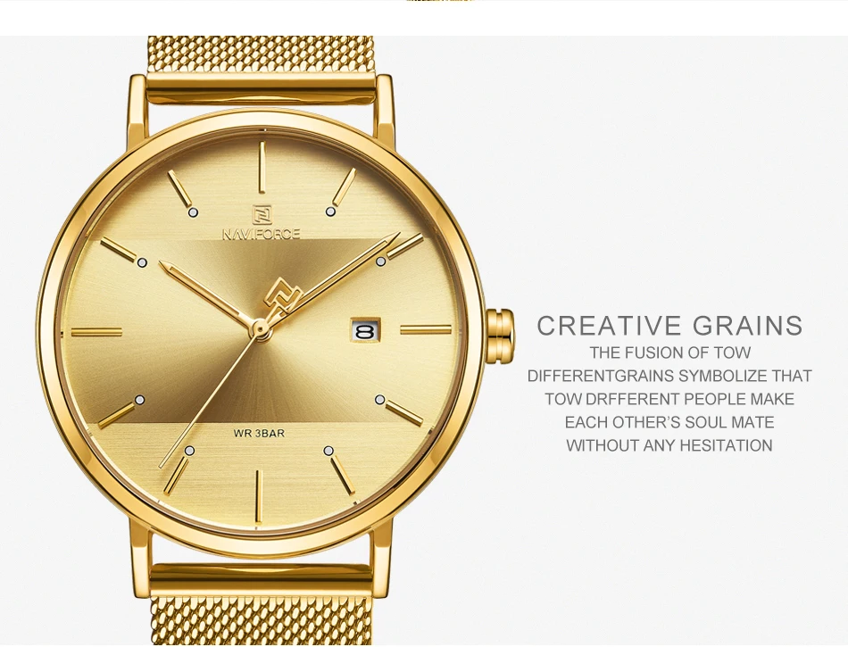 Часы наручные NAVIFORCE Мужские кварцевые, роскошные брендовые водонепроницаемые Модные, для влюбленных, из нержавеющей стали