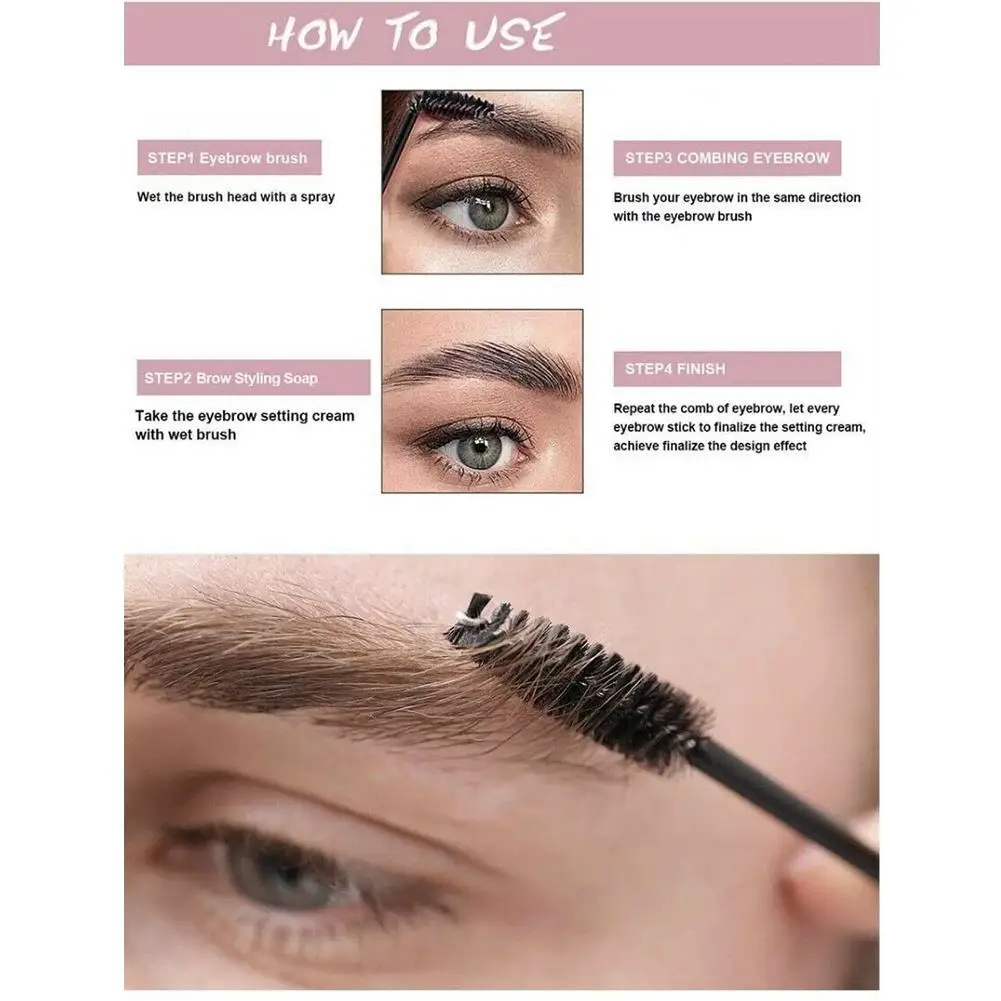 3. Многократное расчесывание бровей и нанесение мыла на каждую бровь для достижения эффекта укладки.