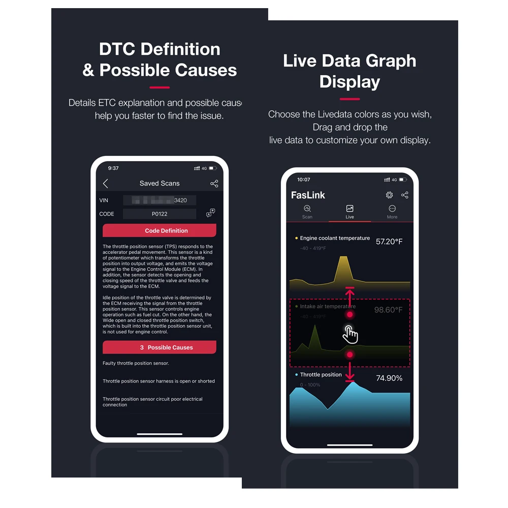 1) Бесплатное программное обеспечение Faslink X, предназначенное для диагностики транспортных средств, Поддержка iOS /Android Пожалуйста, найдите программное обеспечение в Google Play и App Store. 2) для системы Android, P01 bluetooth, не только поддерживает FasLink X, но также поддерживает Torque, DashCommand, OBD Car Doctor и многие другие программного обеспечения, но большинство из них не являются бесплатными. Подключитесь к iPhone в течение 1 секунды, очень быстро. 3) Поддержка функций полного obd-2 4) подключение к iPhone в течение 1 секунды, очень быстро. 5) Версия прошивки V1.5, с реальным чипом PIC18F25K80, стабильной функцией и длительным сроком службы. 6) Supprts ATAL/ATTP/ATNL