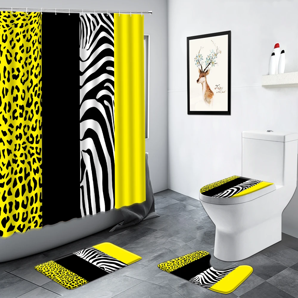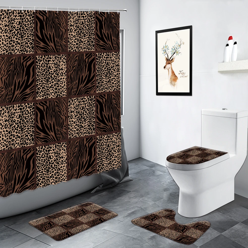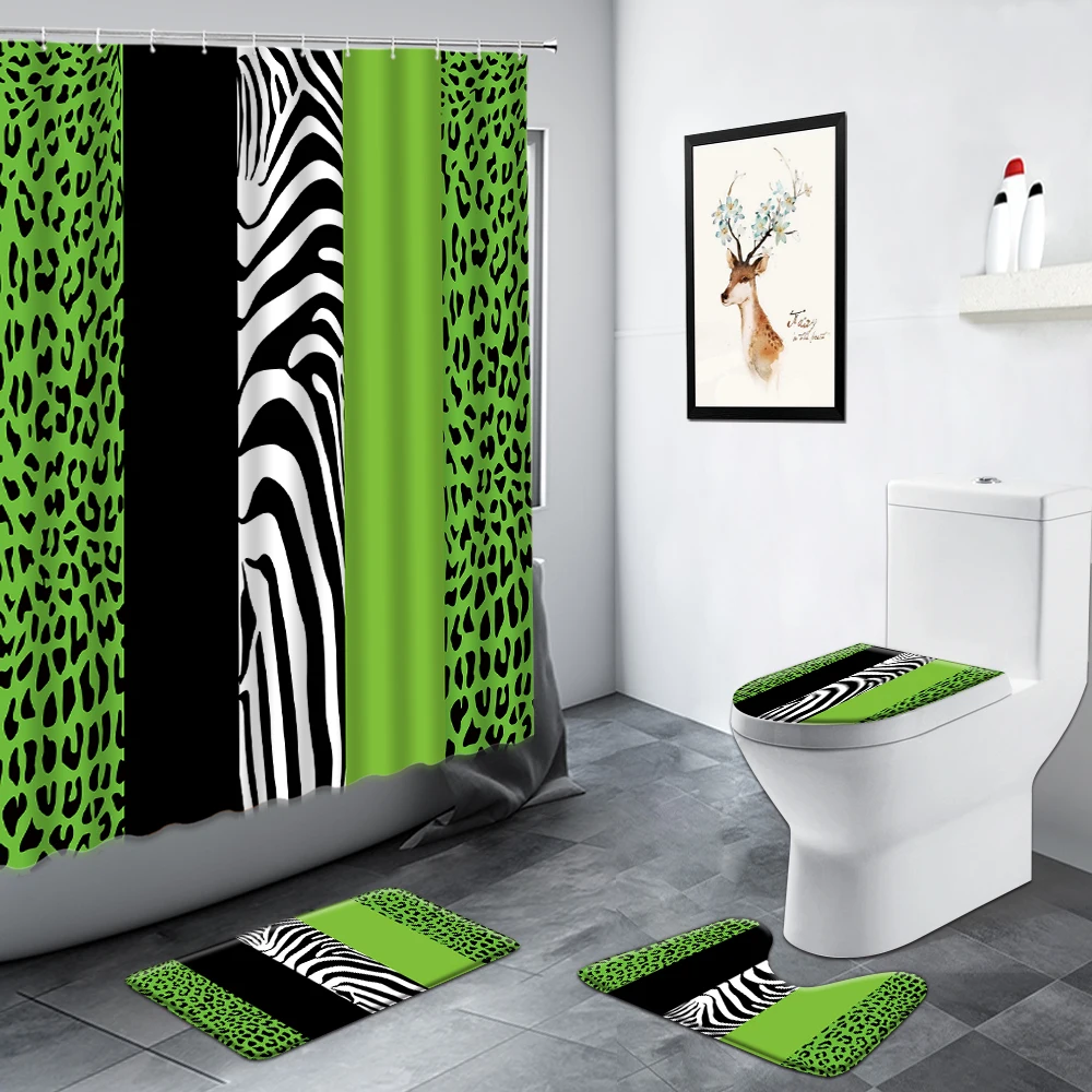 Модные с рисунком зебрылеопарда занавеска для душа с полосками красного цвета: зеленый, коричневый, узор с рисунками снеговой бабы Нескользящие ковры коврики для ванной туалета Декор наборы для ухода за кожей