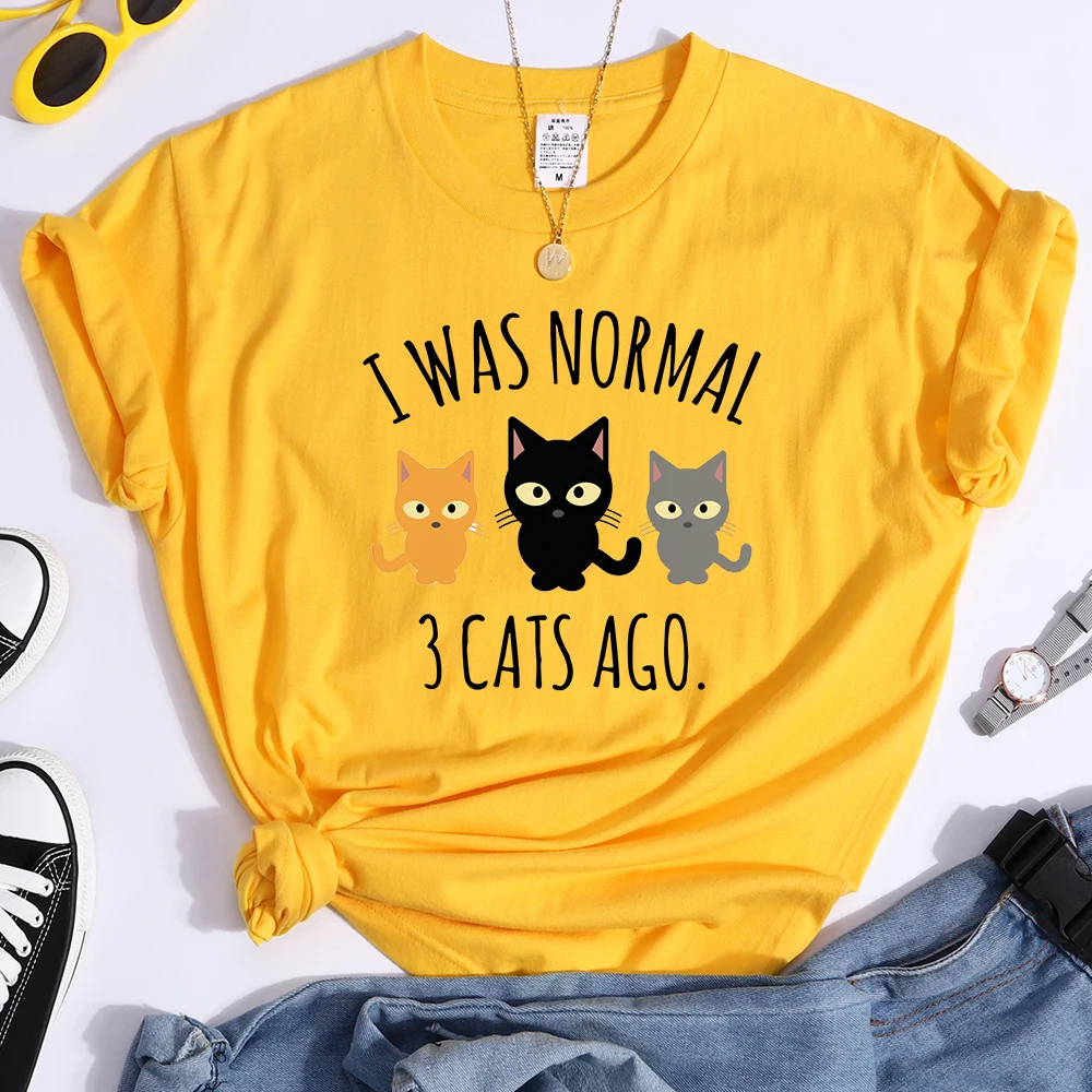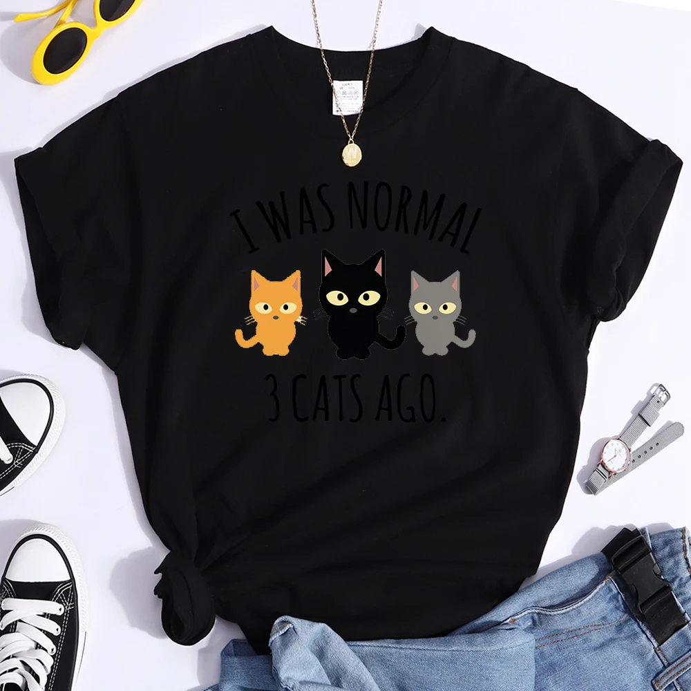 I Was Normal 3 Cat Ago/женская футболка с принтом, летние качественные футболки, дышащие повседневные футболки больших размеров, креативные женские футболки