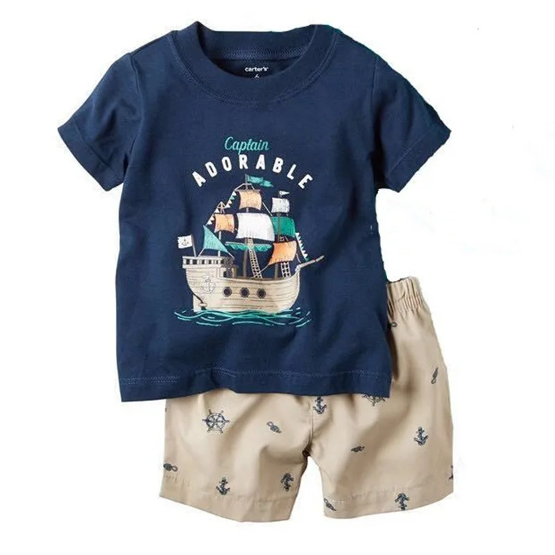 Парусника; Сезон лето; Одежда для сна для мальчиков из хлопка Пижамы; детские пижамы, комплекты, детские рубашки с короткими рукавами + шорты для мальчиков, одежда для сна с коротким рукавом, домашняя одежда От 2 до 7 лет