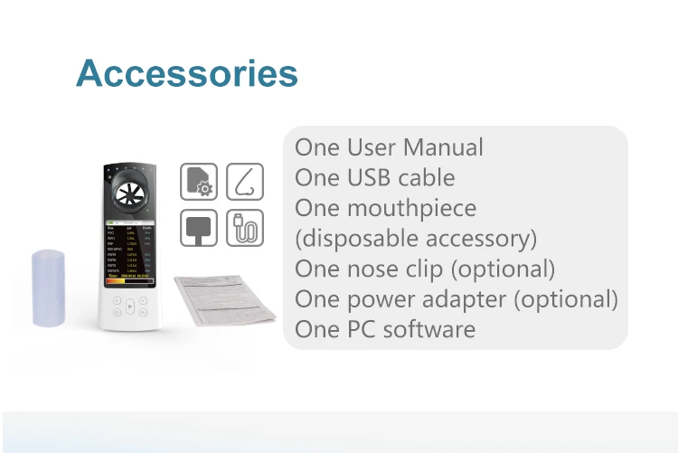Спирометр-это ручное оборудование для проверки состояния легких, он принимает инфракрасный режим для измерения относительных предметов и подходит для больниц, клиник, семьи для рутинного тестирования.