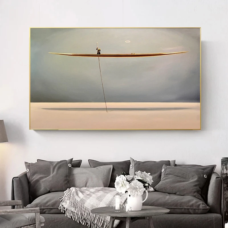 Морская Золотая лодка Абстрактная Картина на холсте скандинавские винтажные постеры и принты современные настенные картины для гостиной домашний декор