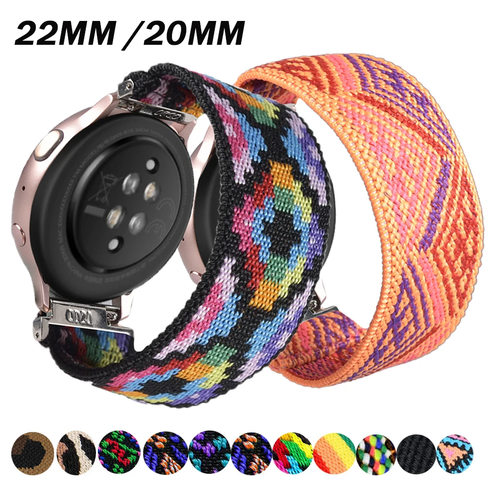 Эластичный ремешок для часов с нейлоновой петлей 20 мм 22 мм для Samsung Galaxy Watch 3 active2, цветной браслет 18 мм, браслет для часов Huawei
