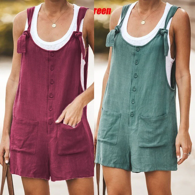 Женский комбинезон без рукавов, повседневный однотонный комбинезон на подтяжках, с широкими штанинами, с карманами на пуговицах, лето 2021